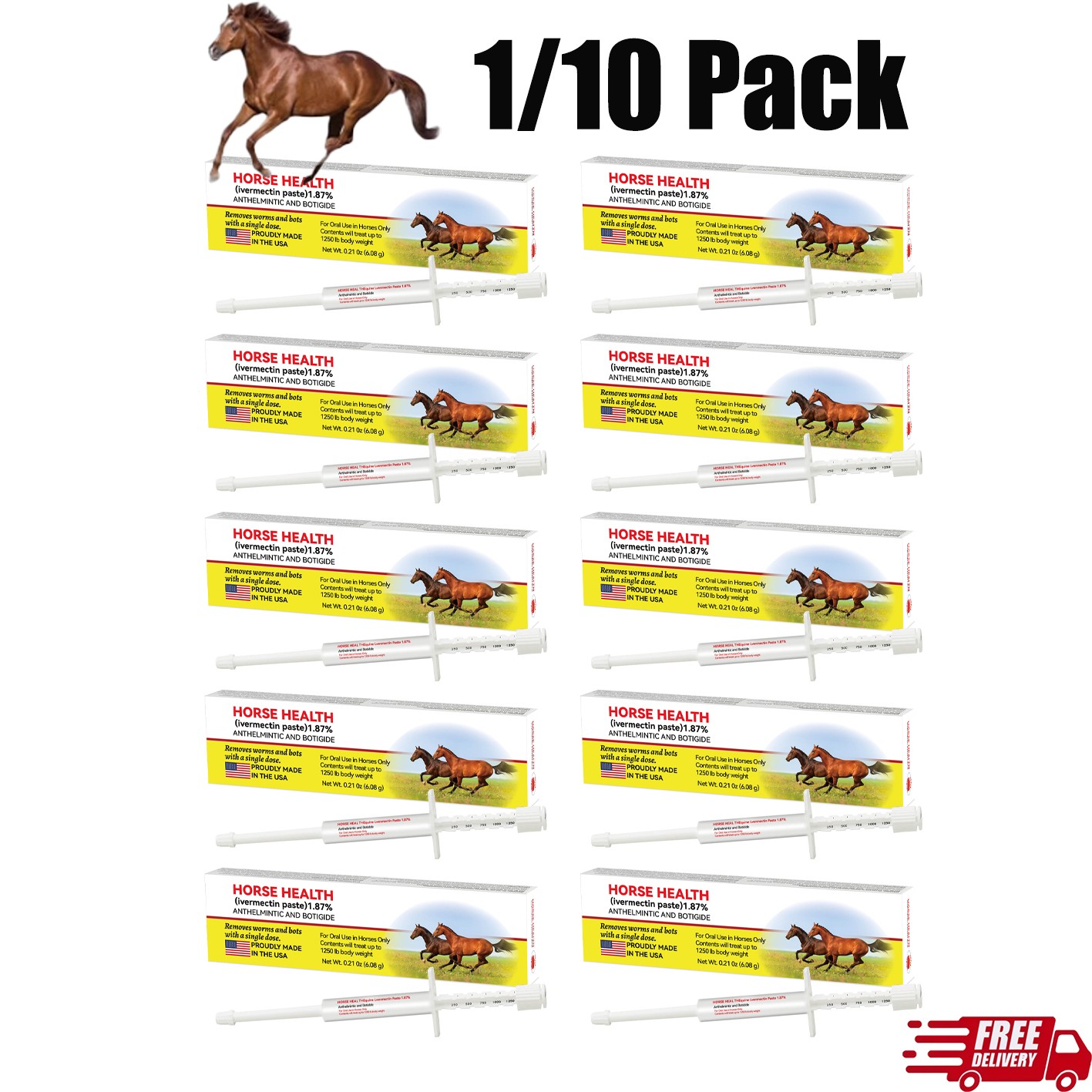 This listing is for horse dewormer paste sold as a 1-pack or 10-pack, with an expiration date of 4/2026. Condition is New. It is suitable for shoppers looking for horse dewormer paste in a convenient multi-pack option. Free Shipping is included, with delivery within the US as indicated by the listing. The product description does not provide additional details, ingredients, or dosing information, so check the listing for details.