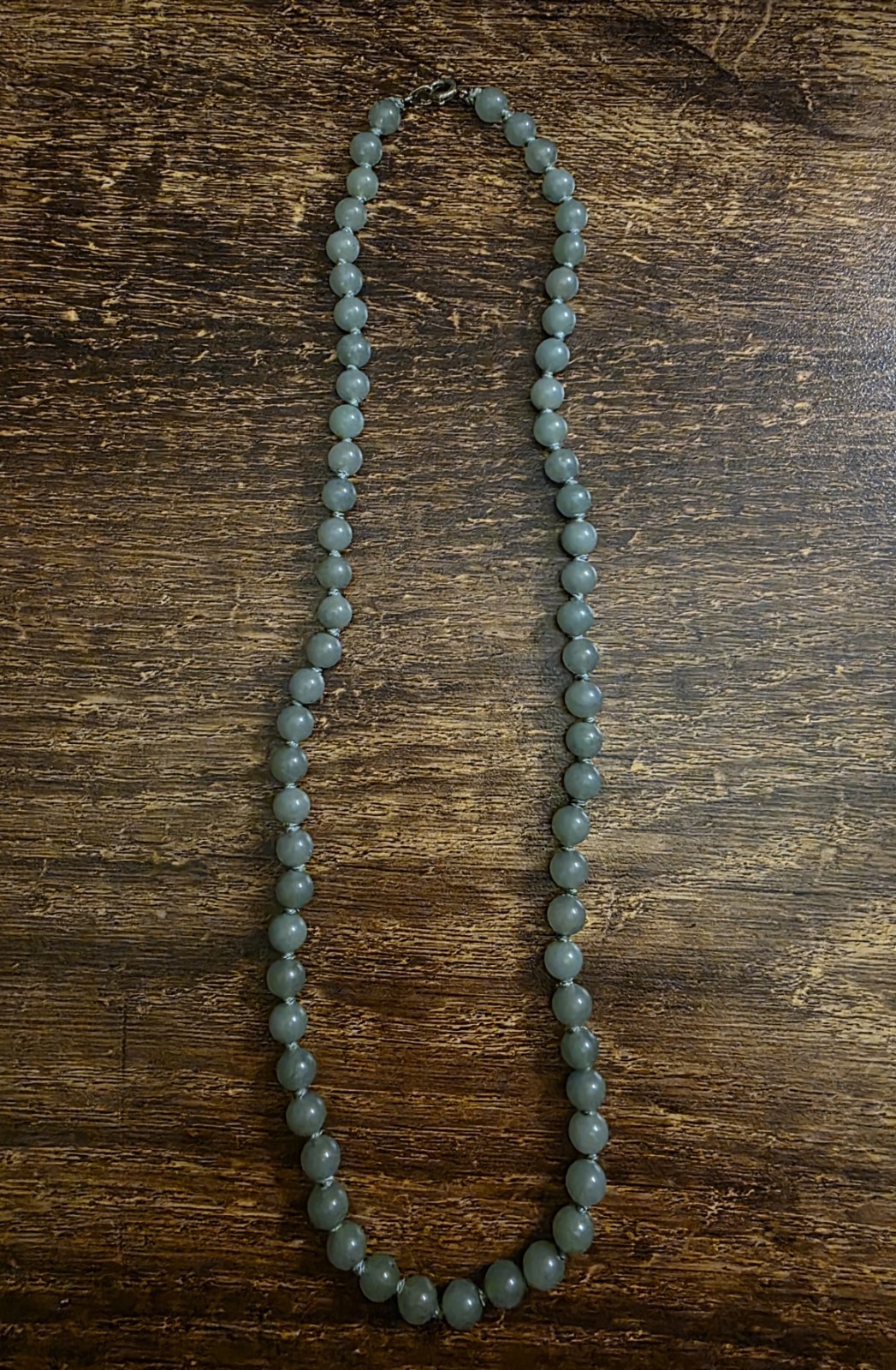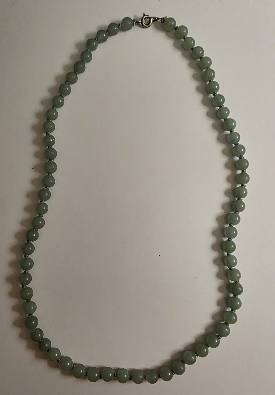 This antique jade necklace features 5mm beads and a hand-knotted design with an 18-inch length and a sterling silver clasp. Condition is used; check the listing for details on any visible wear, patina, or clasp functionality. Free shipping is included, making it a straightforward option for collectors or anyone looking for a classic jade bead necklace. Check the listing for details on origin, age, and any additional materials or markings.