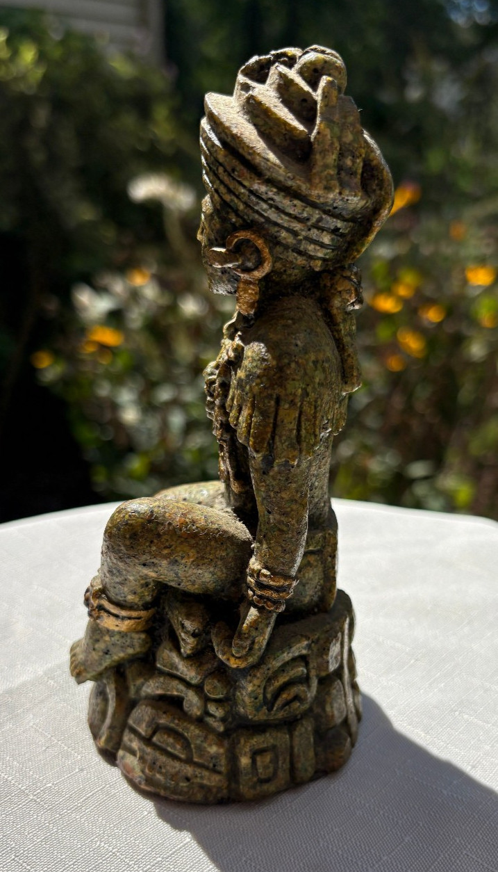 This is a nice crushed green malachite statue of a Mayan or Aztec man or god by Zarebski in Mexico. It measures 5.75 inches tall, 3 inches wide, and 2.5 inches deep. From a smoke free home. Thank you for looking and bidding!