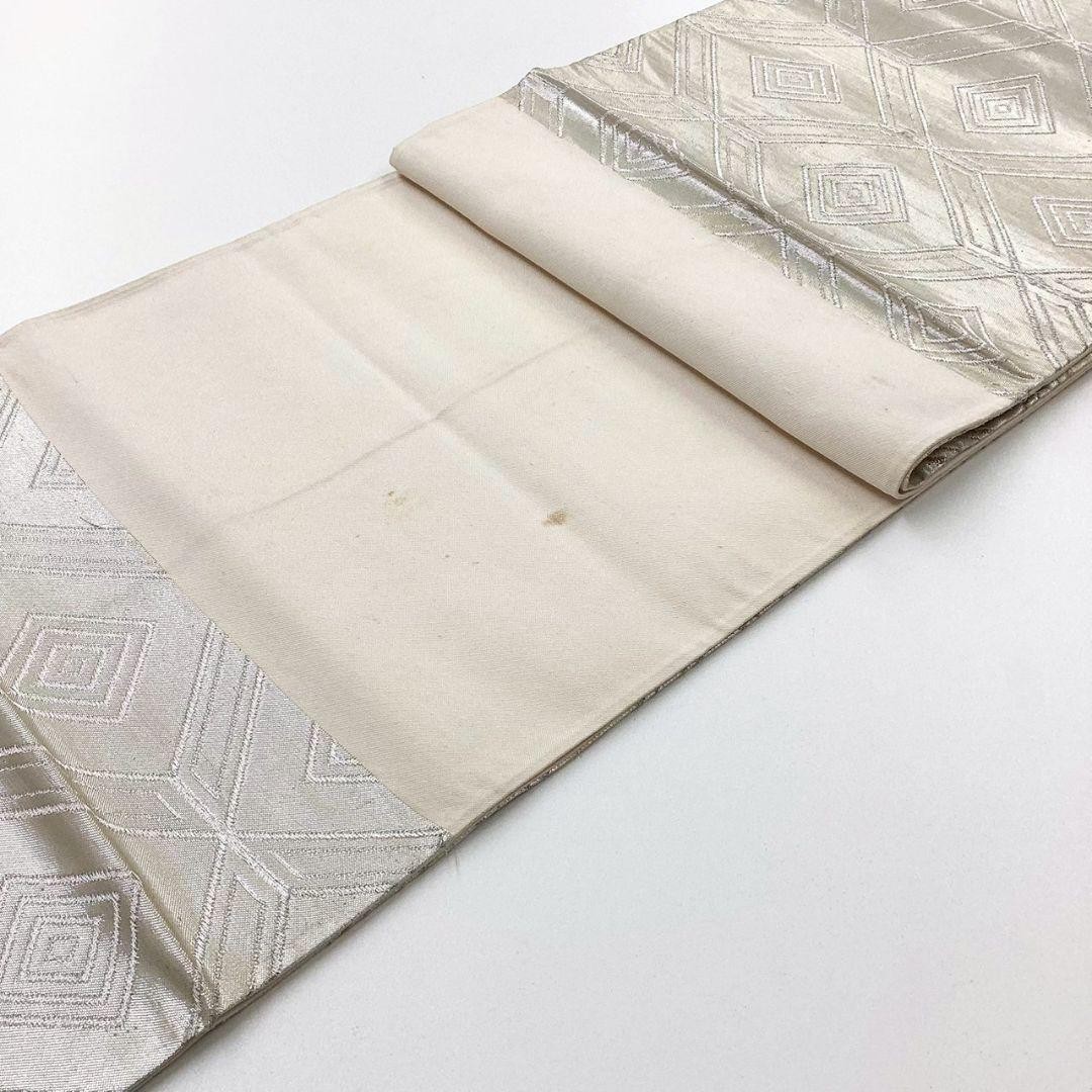 This Japanese vintage Fukuro Obi belt features traditional silver-toned kimono fabric and is listed in used condition. There is some staining and damage as shown in the photos, so please review the images carefully and check the listing for details. Suitable for collectors or for display, crafting, or costume use depending on your needs. Free shipping is included with purchase; check the listing for shipping method, handling time, and any additional delivery information.