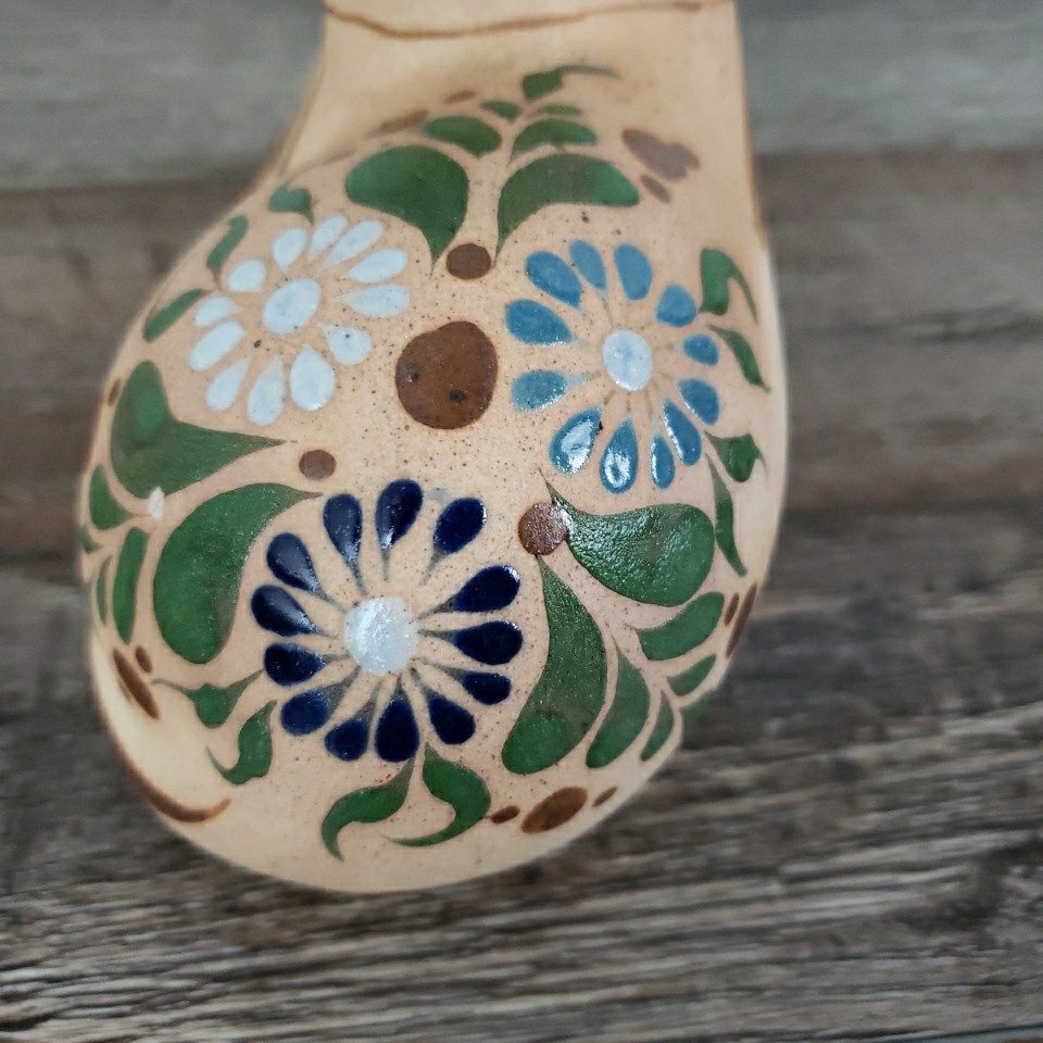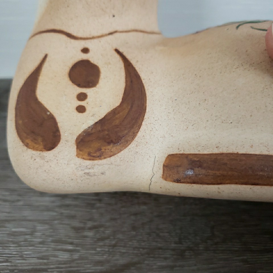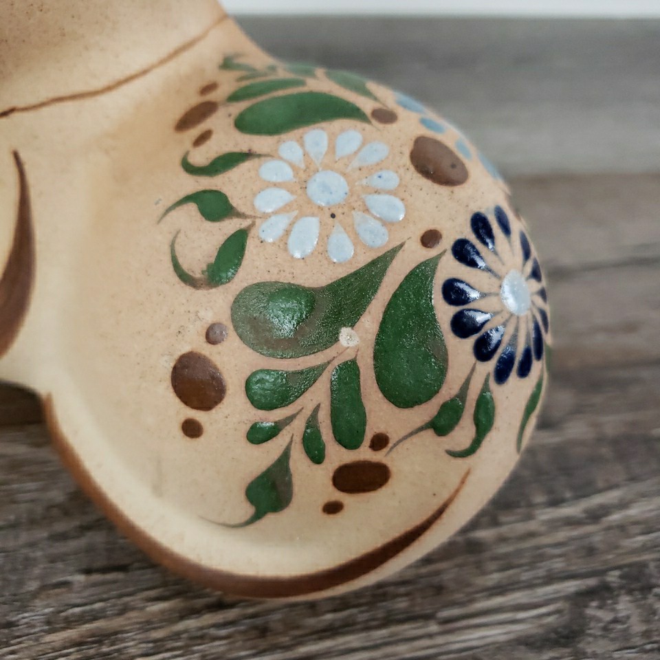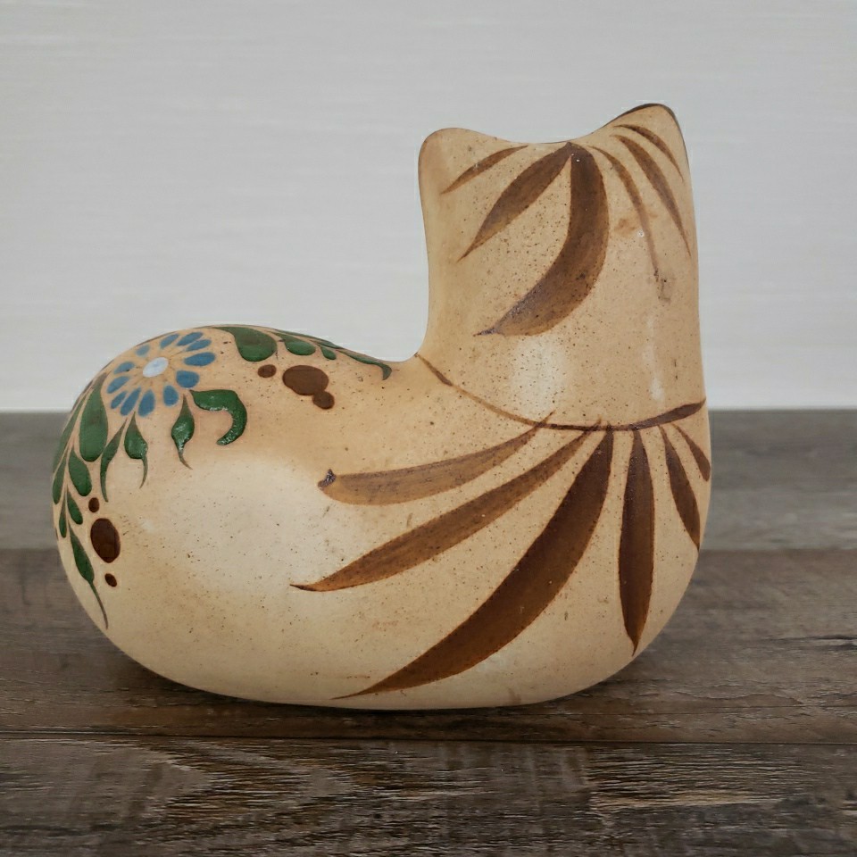 This used Mexican pottery cat figurine features hand-painted folk art styling with textured floral details. It’s a decorative collectible that can suit shelves, mantels, or curated folk art displays. Condition is used; check the listing for details on any wear, chips, or paint variation that may be present from age or handling. Free shipping is included, and the item will be packed to help protect it in transit. Check the listing for details.