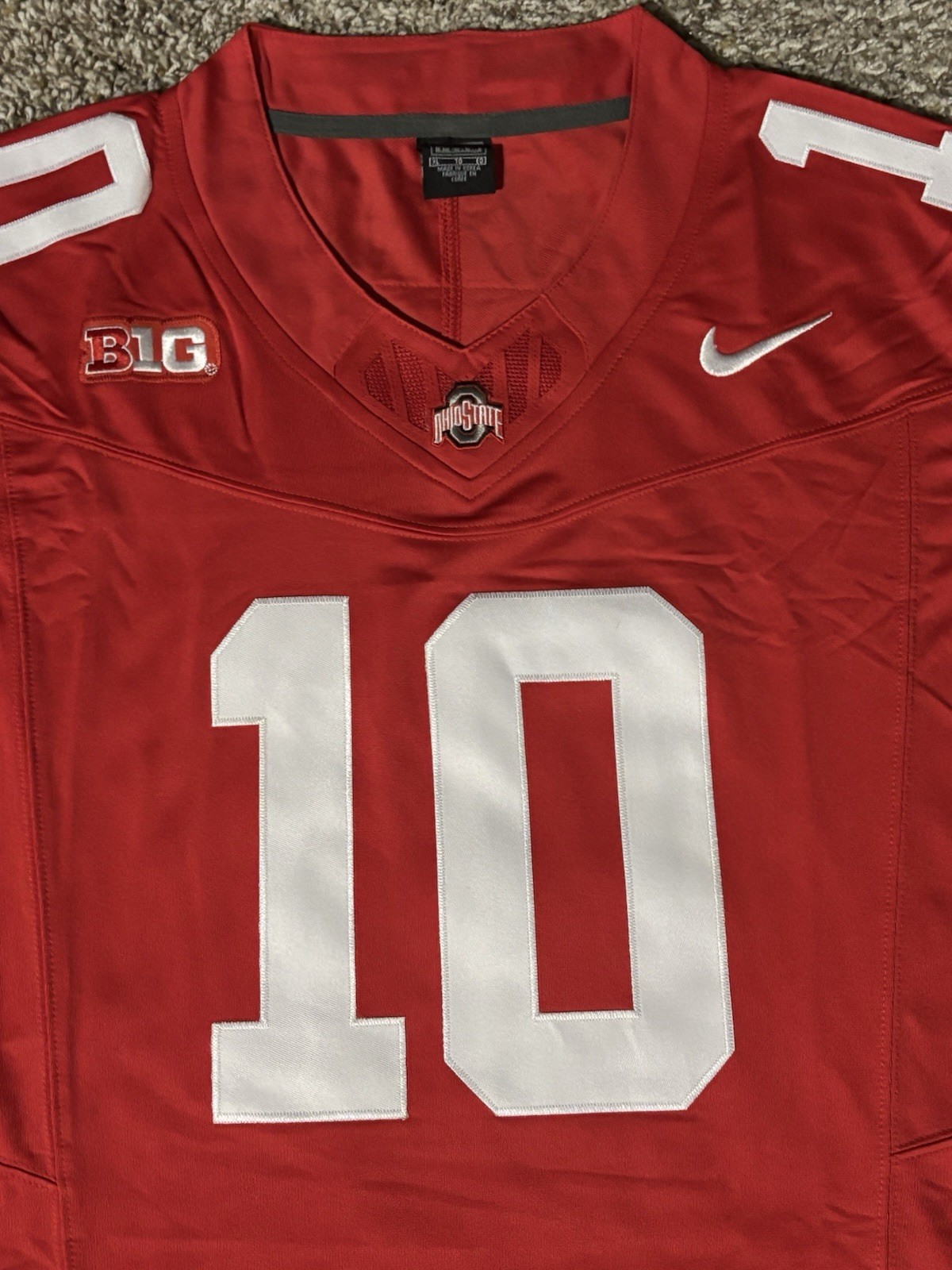 This Julian Sayin Ohio State Buckeyes football jersey is offered in new condition and is a great option for fans looking to add Buckeye apparel to their collection. Check the listing for details on sizing, materials, and any included tags or packaging, as specifications are not provided here. The item is priced at $49.80 and ships with free shipping. Please review the listing photos and description for the most accurate information before ordering.