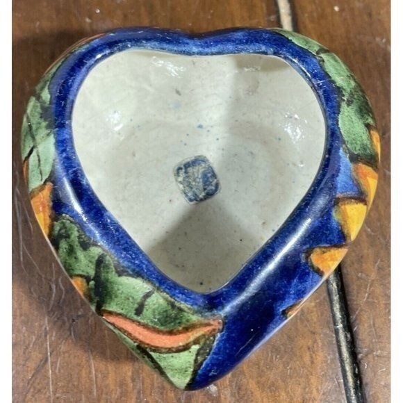 Mexican Talavera Pottery Heart Shape Trinket Box Dish Jewelry Box.In good condition. No chips or cracks. Please view all photos.3.5” X 2”