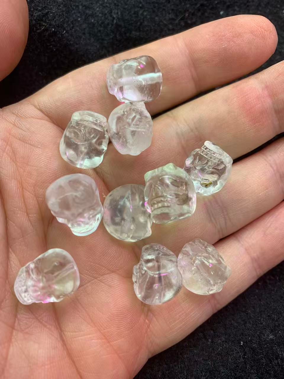 This set includes 10 Chinese natural quartz crystal handmade skull beads in excellent condition. The beads are described as having no damage and no cracks. It can be a good fit for collectible displays, crafting projects, jewelry making, or adding unique accents to your collection. Free shipping is included with the purchase. Check the listing for details on exact bead size, hole diameter, finish, and any natural variations in the quartz crystal.