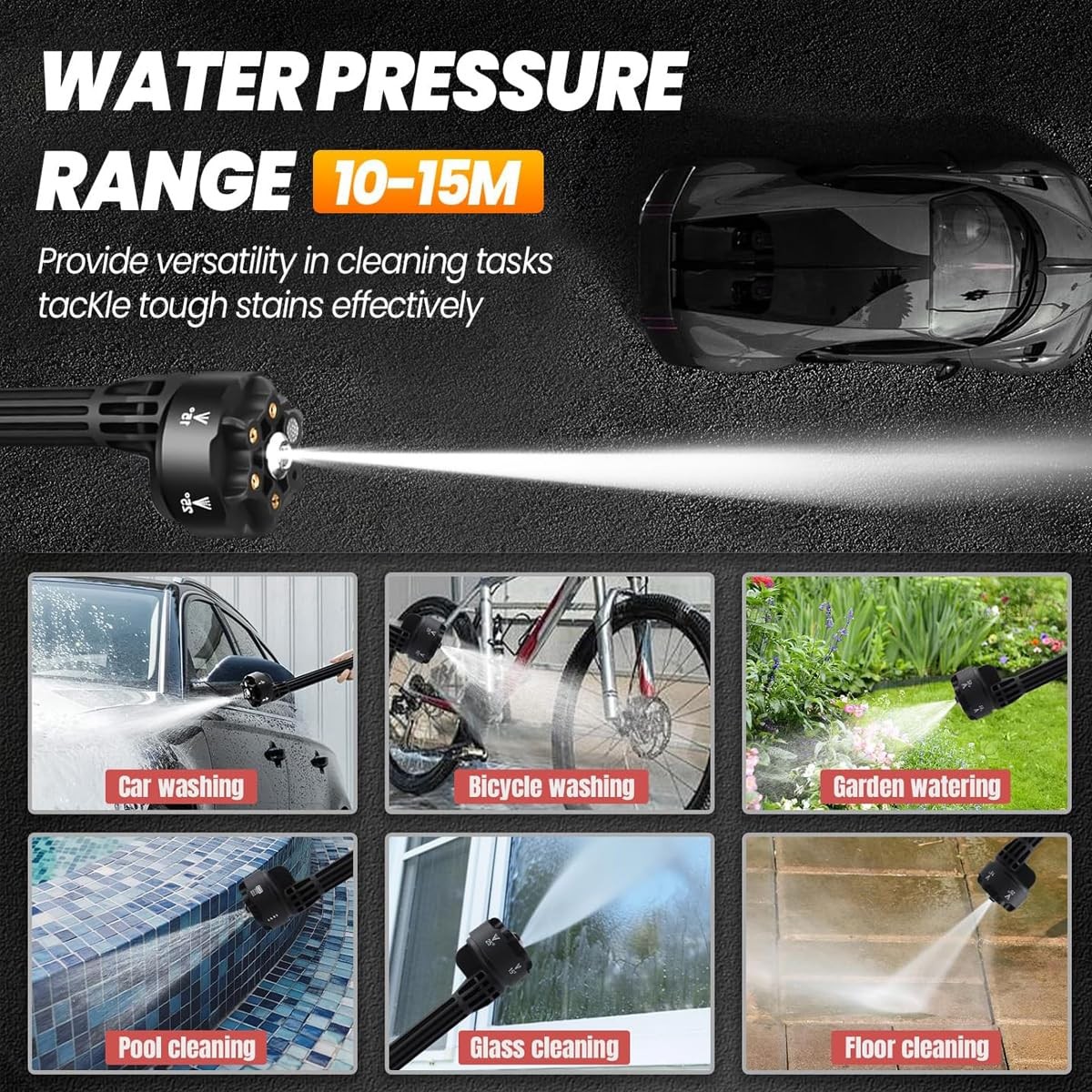 Specification Pressure:750 PSI Weight:3lb Included 1 x Cordless Pressure Washer 1 x Foam Bottle 1 x Water Filter 1 x Water Hose Battery Not IncludedCordless portable washer nice for milwaukee 18V batteries, including 48-11-1840, 48-11- 1850, 48-11-1860 etc. Note that batteries are not included.The pressure washer for milwaukee battery is equipped with a high performance 500W motor, the maximum water pressure of the pressure washer is 750PSI, providing enough power for car cleaning and enjoying the convenience of cordless operation.The pressure washer is equipped with a multi-function nozzle with 6 spray modes, 0°/15°/25°/40°/fan/shower mode. In addition, the power washer is matched with a foam pot that produces dense foam for easy cleaning of cars.The long hose with filter basket can effectively filter impurities such as particles, waste leaves or sludge, easily draw water from bucket, pool,river or any water source, which will save a lot of water and working time, best choice for outdoor use.The compact cordless design makes it easy to carry. Its self-priming function sucks water from buckets, ponds, rivers, etc, saving a lot of water and work time. The hose with filter basket effectively filters out impurities, particles, waste leaves or silt.