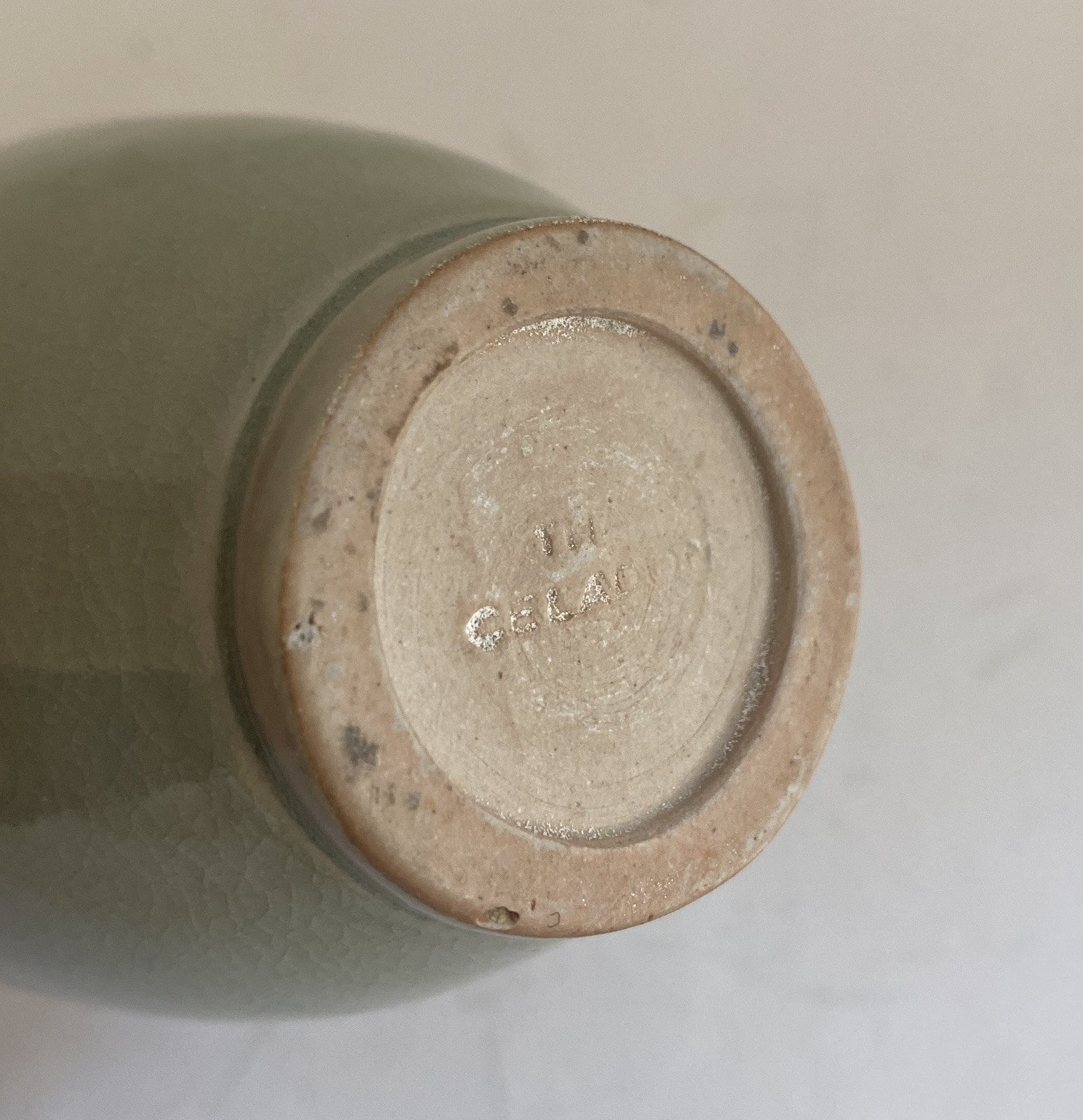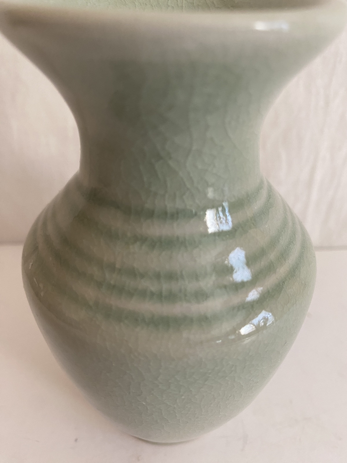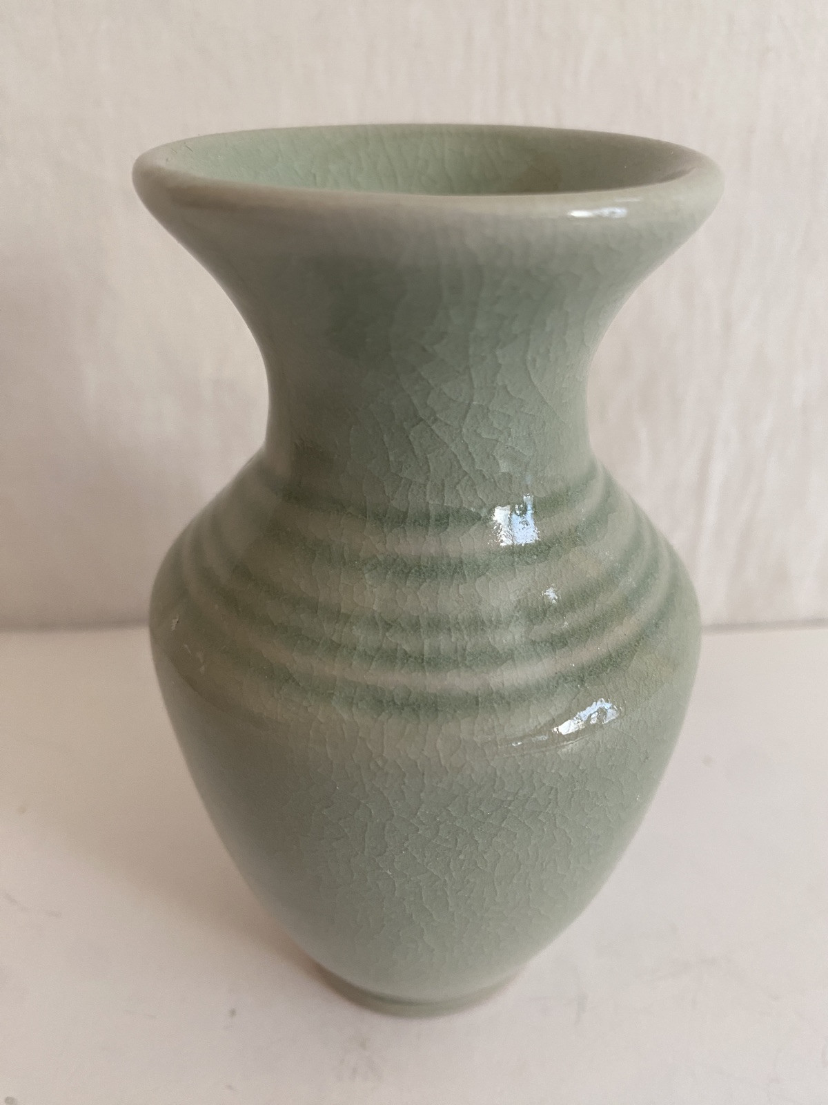 Vintage Green Asian Celadon Signed Bud Vase 4.5" Tall Excellent Excellent condition. See all photos for measurements and details.
