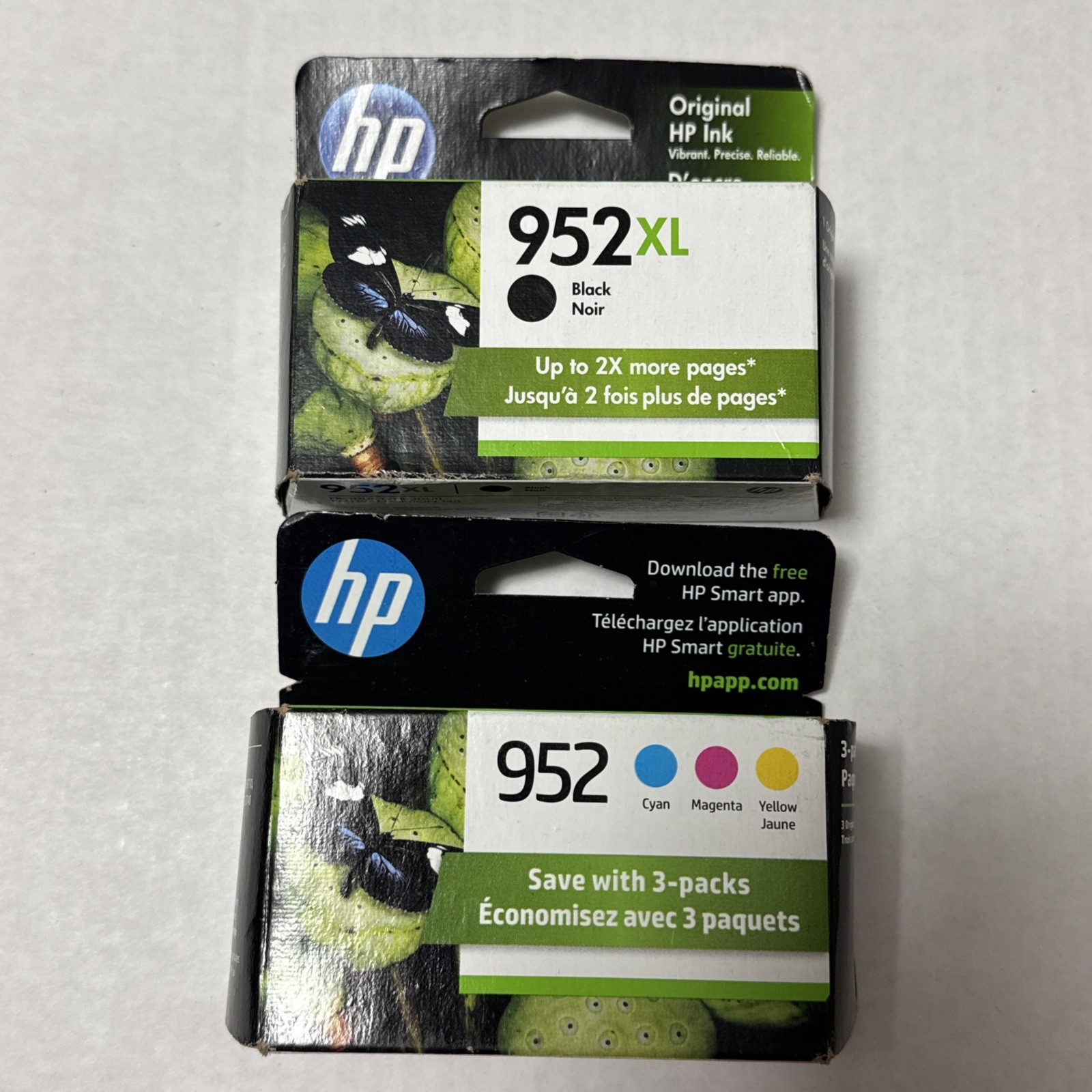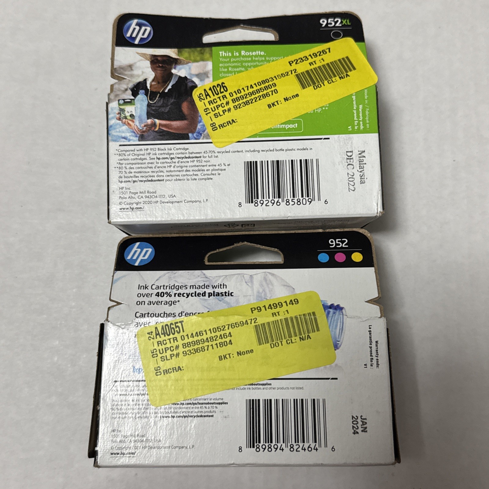 GENUINE HP 952XL BLACK and 952 Color Ink Cartridges New Expired : December 2022+Boxes have yellow stickers as seen in photos. Boxes also have damage such as scratches, scuffs, and markings.