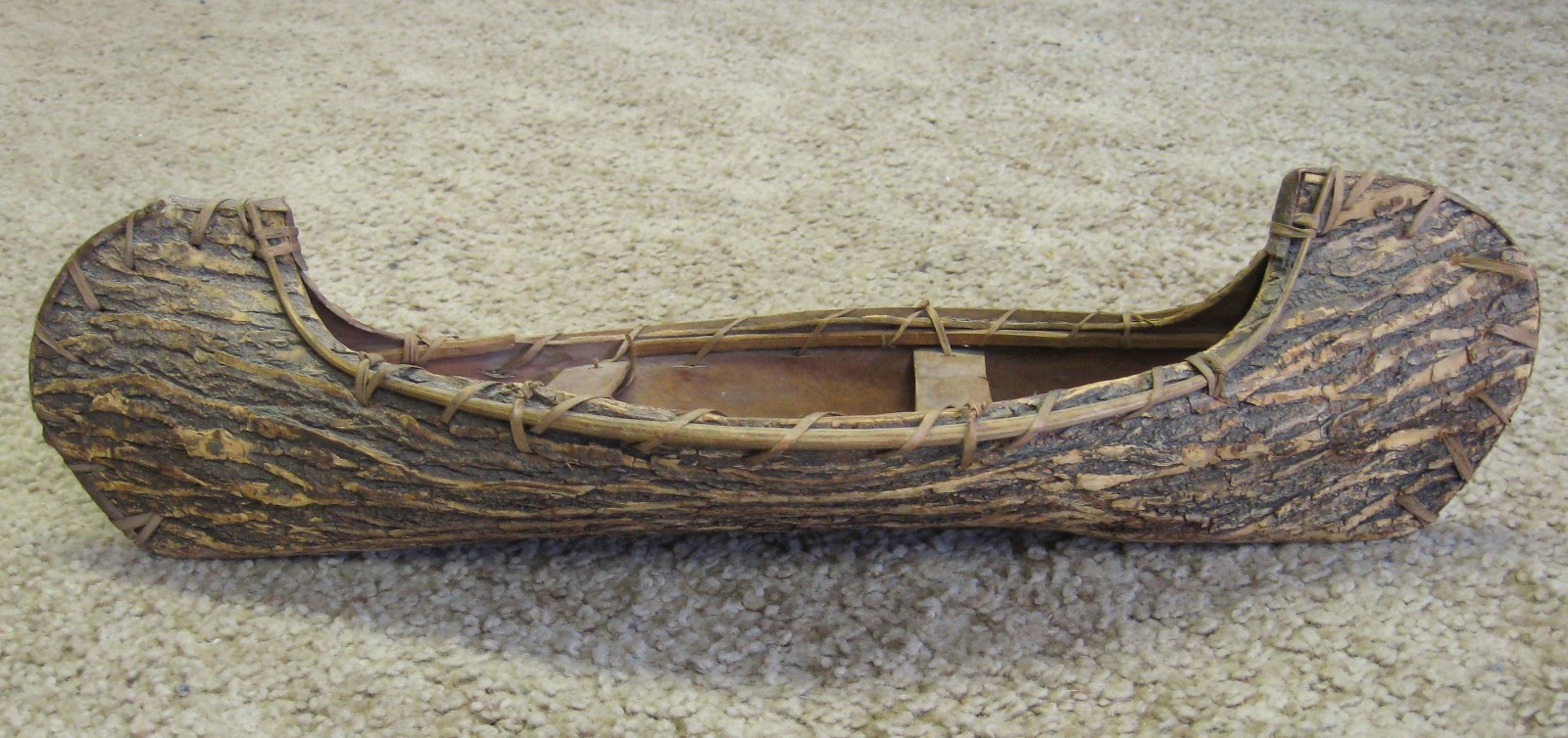This is a Vintage 23" long Native American Bark Canoe. One Seat is Marked "Houghton Lake, Mich.". It has a Few Broken Reeds and Misshaped in As Pictured Condition. For Shipping Cost View the Provided Postal Calculator(packaged weight is 2lbs 6oz). Payment is to be received within 7 days via PayPal, Etc. Thanks for checking this and my other listings. Combine Purchases to Save on Shipping Cost.