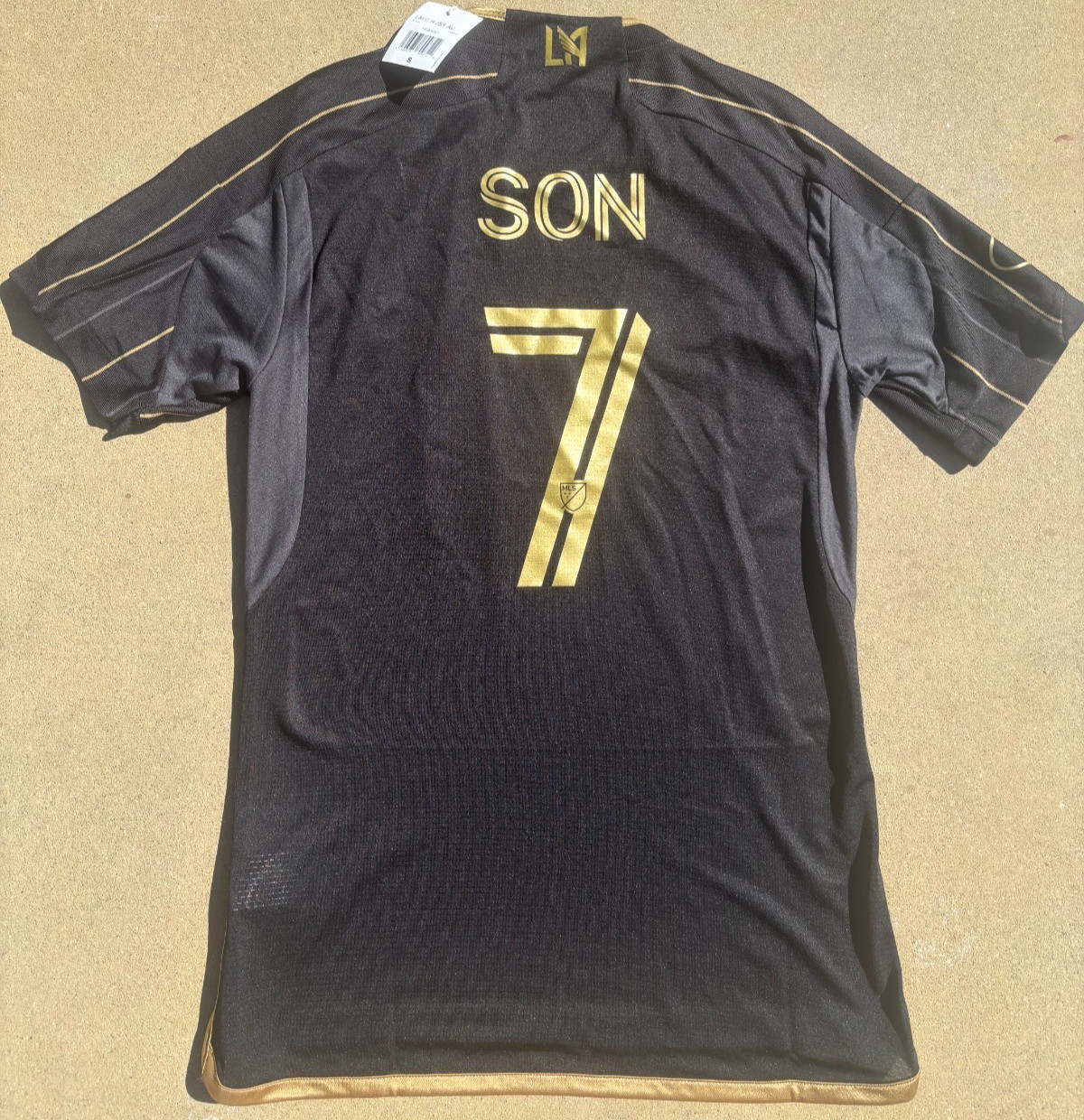 This LAFC Adidas authentic home rookie jersey for Son #7 is listed in new condition and fits fans and collectors looking for an MLS player-issue style item. It is part of the Sports Mem, Cards & Fan Shop category and is offered with free shipping. The listing title indicates it is a 2024/2025 home jersey, but no additional details are provided here. Check the listing for details on sizing, materials, tags, included packaging, and any player-issue features before purchasing.
