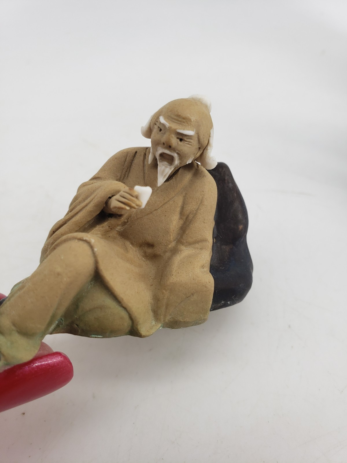 This set of 6 Chinese Miniature Mudman figures is handmade, reflecting the rich cultural heritage of China. Each figurine is individually crafted, showcasing the intricate details and craftsmanship typical of traditional Chinese design. This unique collection captures the essence of Chinese culture and artistry, making it a valuable addition to any collector's display. Some of these figures have minor chips and one has a large chunk taken off of his hat, please see all pictures.