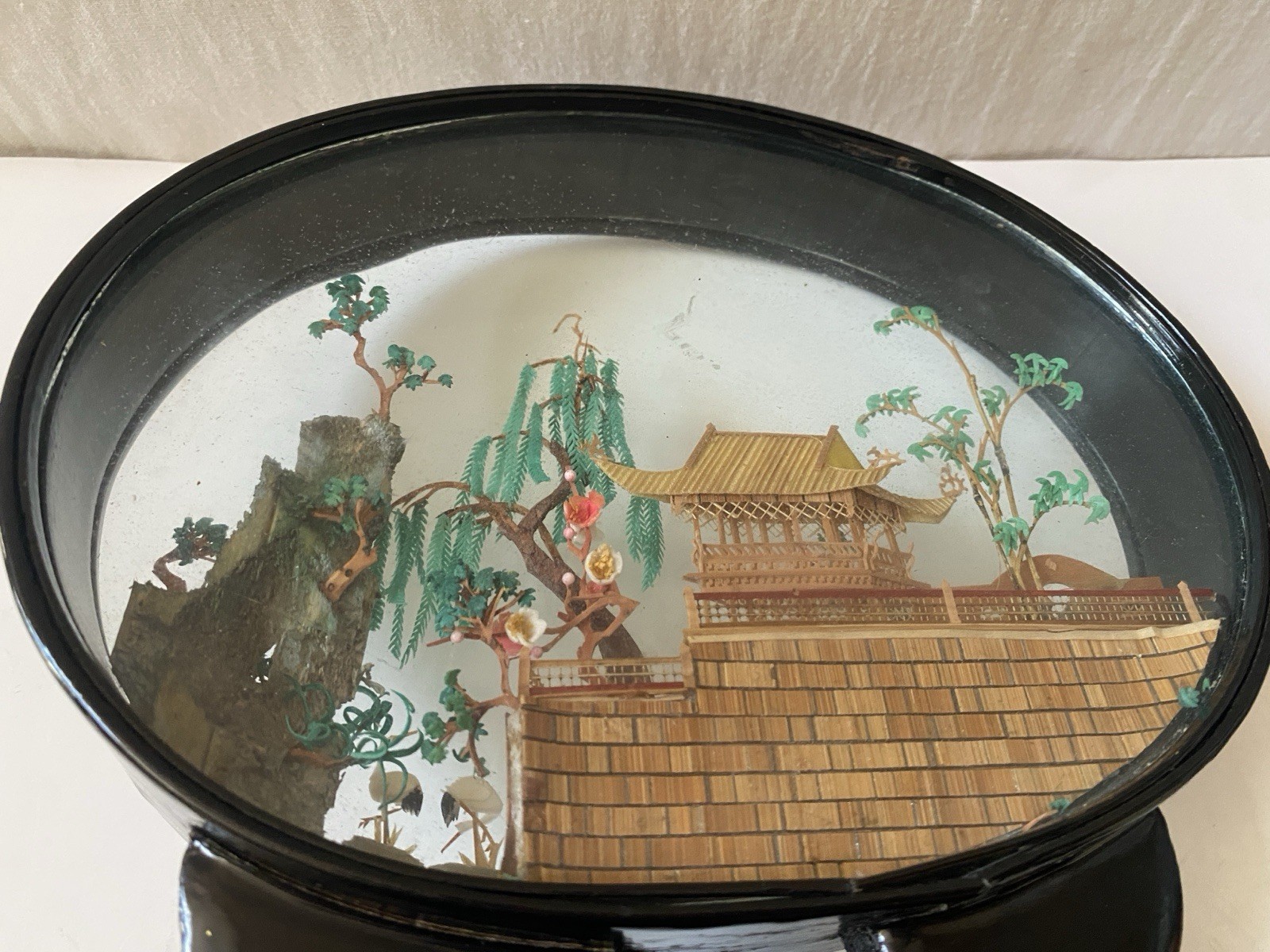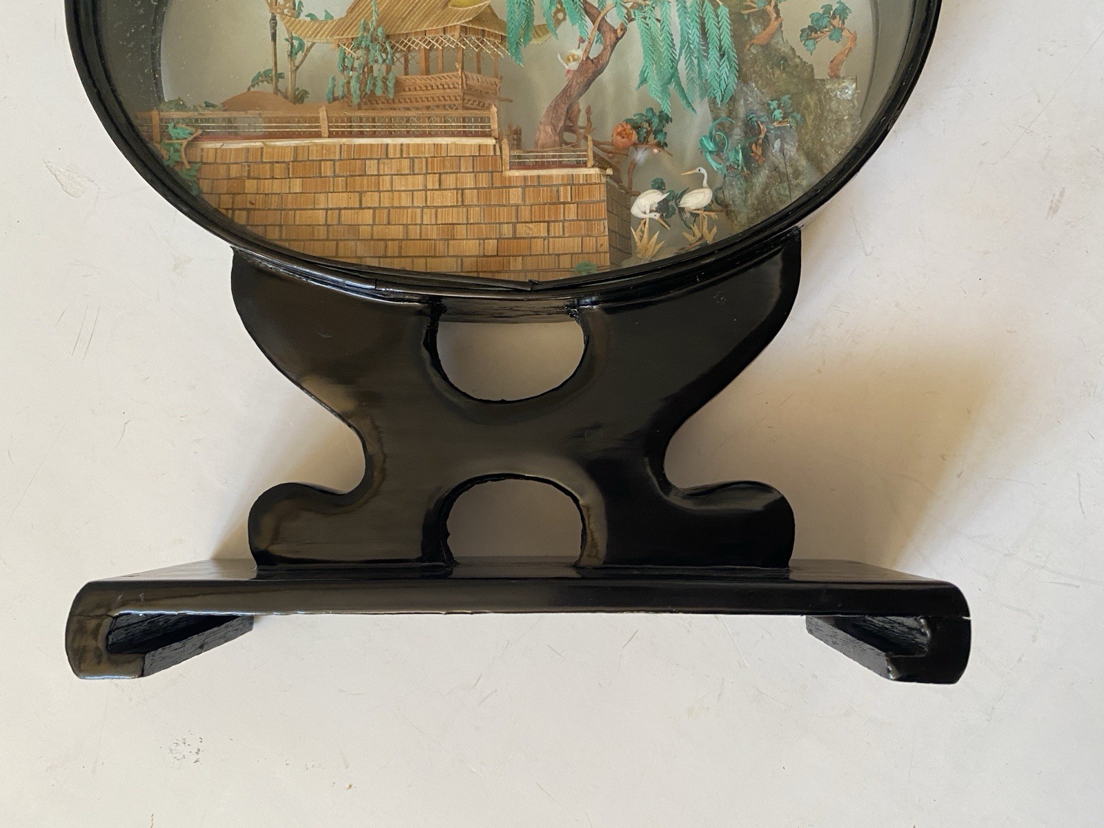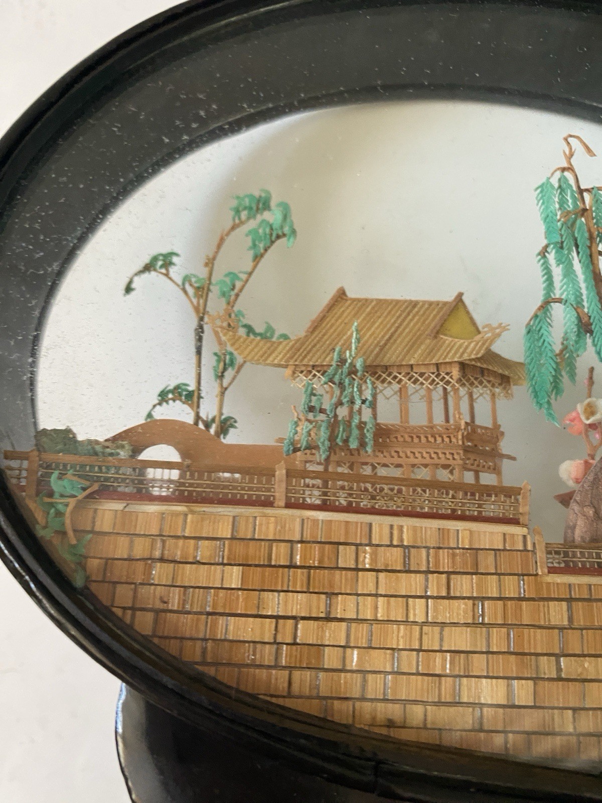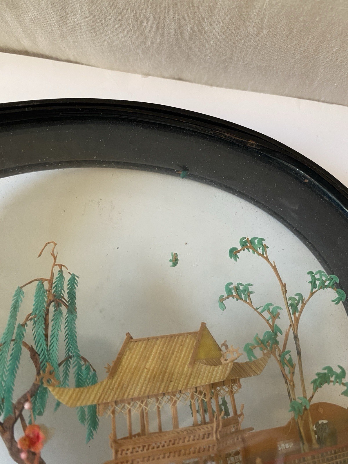 VTG Chinese Cork Carving Diorama Art Black Lacquered Frame San YouSee all photos for measurements and details.A few tree leaves fell due to age(Photo .