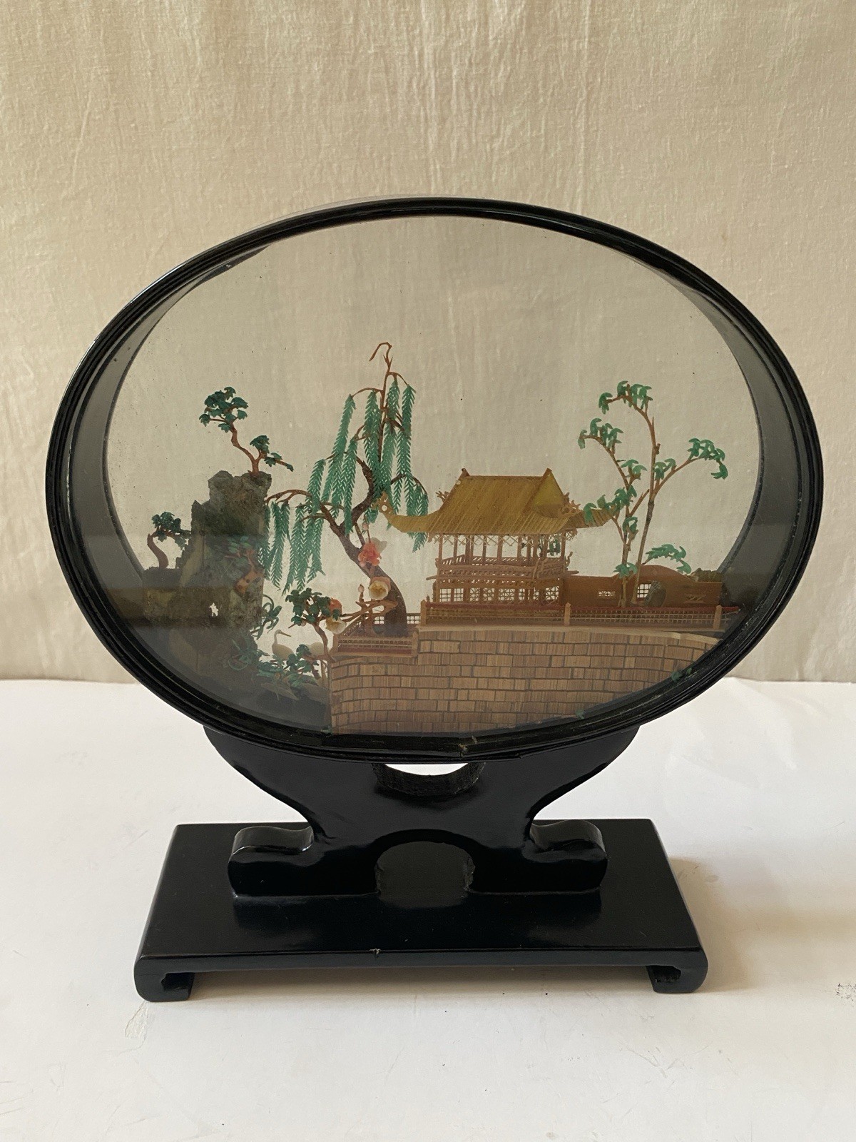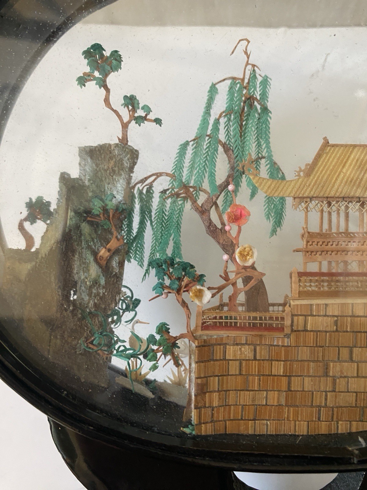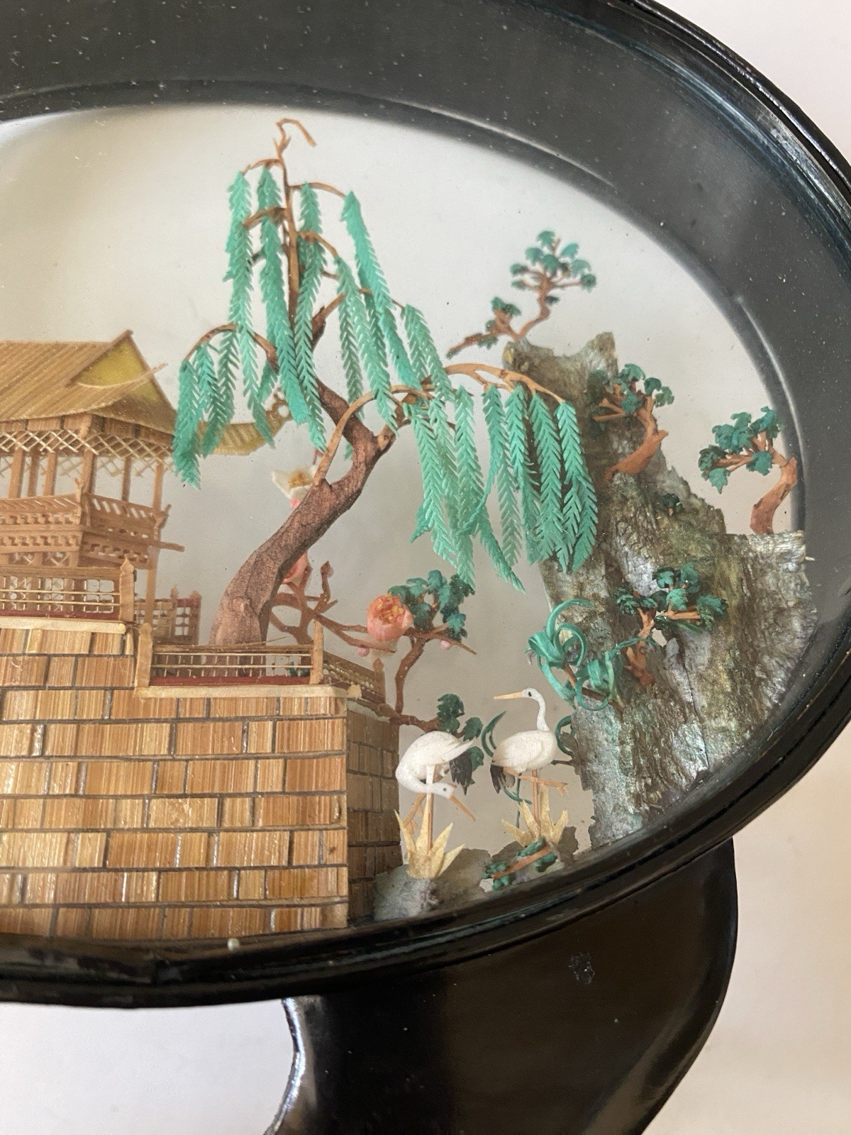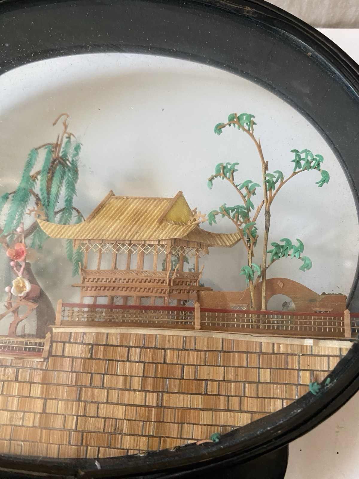 VTG Chinese Cork Carving Diorama Art Black Lacquered Frame San YouSee all photos for measurements and details.A few tree leaves fell due to age(Photo .