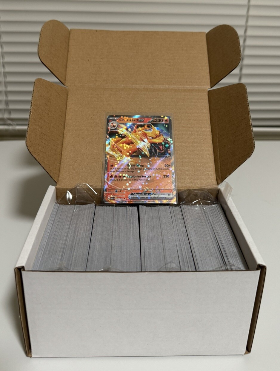 450+ Pokemon Cards Random Bulk Lot C/UC/ Rev Holo/Holo & One Random -ex from S&V. Condition is Used. Shipped with USPS Ground Advantage. Majority of cards are from scarlet and violet era, with very few, if any from sword and shield era. Some cards were pre sorted by set so you may receive several duplicates, or boxes that contain cards from only one set. I may be able to accommodate small requests, so please reach out with any questions.May contain the following:Scarlet/violet setsSword/shield setsJapanese cardsKorean cardsNo energiesNo codes