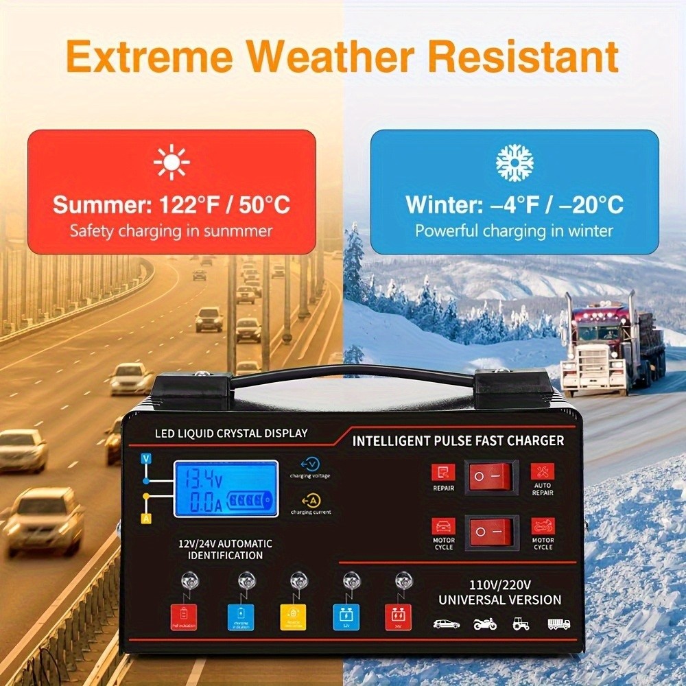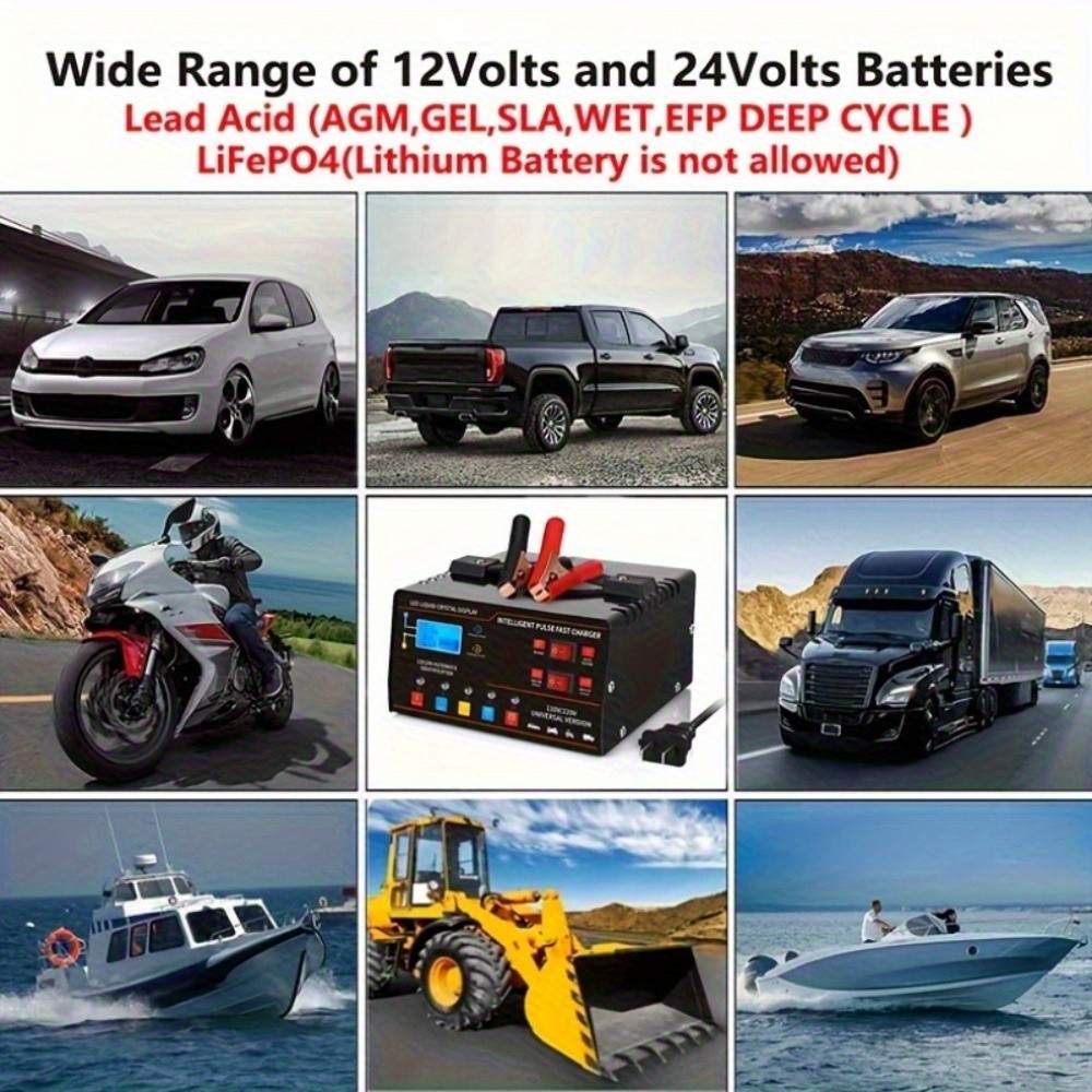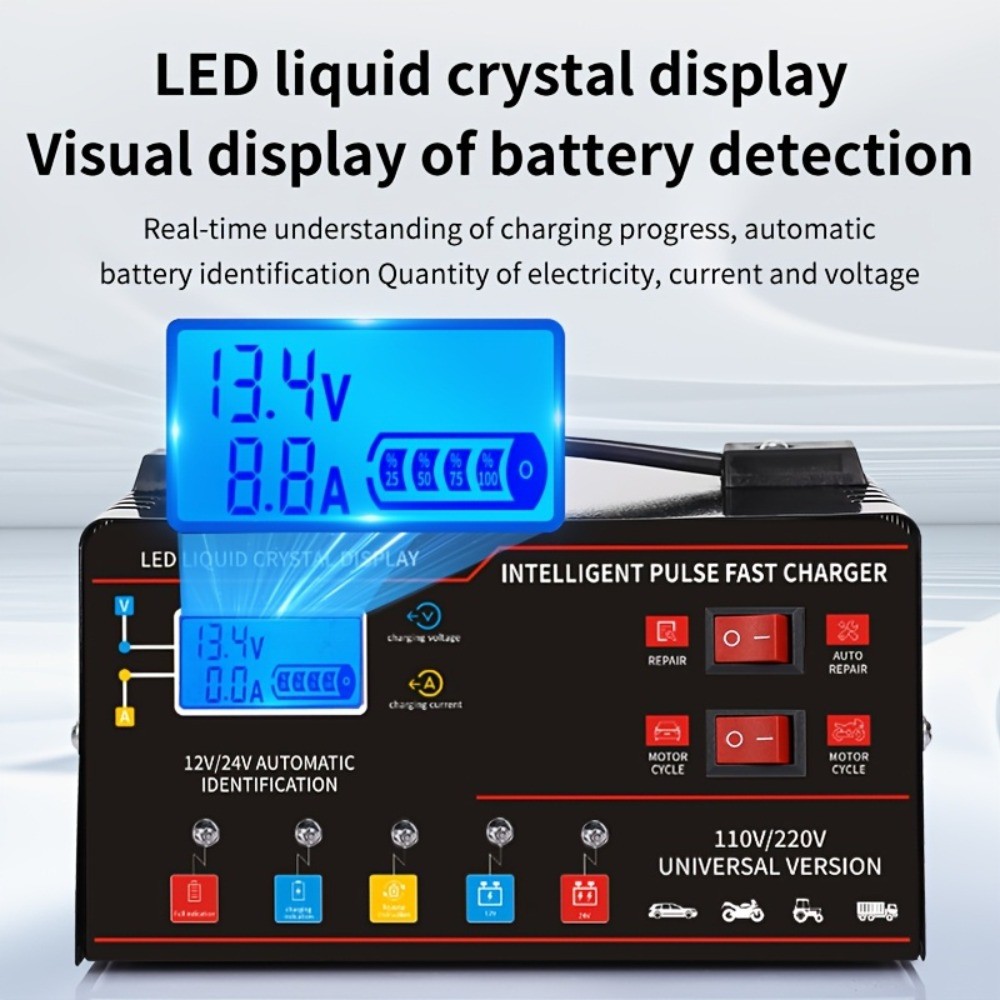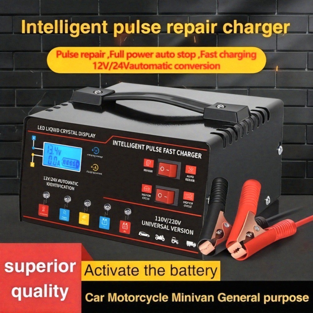 This heavy duty 12V/24V car battery charger is designed for charging and maintaining vehicle batteries with smart automatic operation and pulse repair/trickle functions. It is listed as New in the eBay Motors category. Free Shipping is included, so you can expect delivery without an added shipping cost. Use it for routine charging, battery maintenance, or recovery support when applicable. For compatibility, included accessories, safety features, and exact operating modes, check the listing for details.