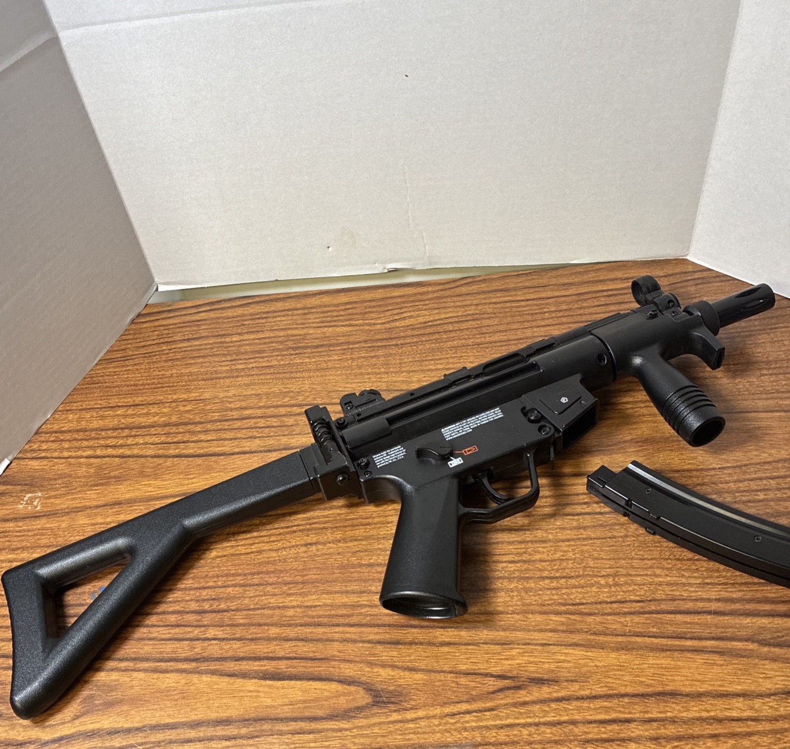 Works as it should. Has some scratches. The stock is a little wobble. A small piece broke off sight part (please see photos). Note it is not full auto. This listing complies with eBay’s air gun guidelines found here and I will only sell and ship air guns to buyers in jurisdictions where permitted by applicable laws The HK mp5k BB gun in caliber is a high-quality air pistol manufactured by Heckler & Koch. This gun is designed for outdoor sports and recreational activities, offering enthusiasts the opportunity to enjoy shooting with a realistic replica of the popular HK mp5k model. With its durable construction and accurate performance, this gun is perfect for both casual target practice and competitive shooting matches. Additionally, the use of caliber BBs ensures reliable and consistent results with every shot.