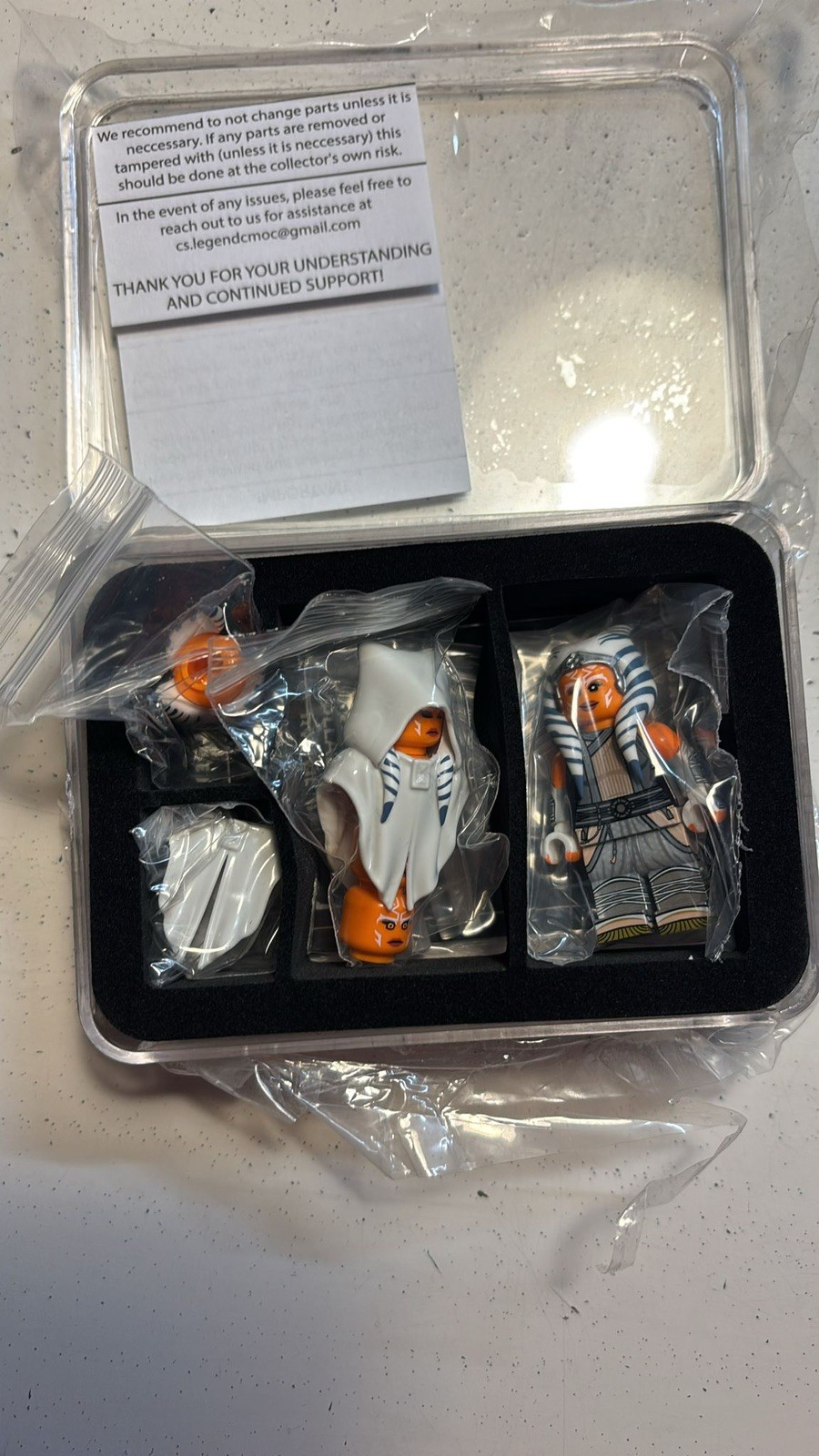 Baggles - White Ronin aka Ahsoka Tano customs Pad Printed Minifigure.This is a figure only made in limited quantities all pad printed on very rare parts.You will also get the expansion please see the 3rd picture.The box has only been opened to confirm that all parts were present the figure and the parts has not been taken out of the poly bags.As this is a private sale I don’t offer any returns all will be sent insured and tracked.Questions please message me in advance.