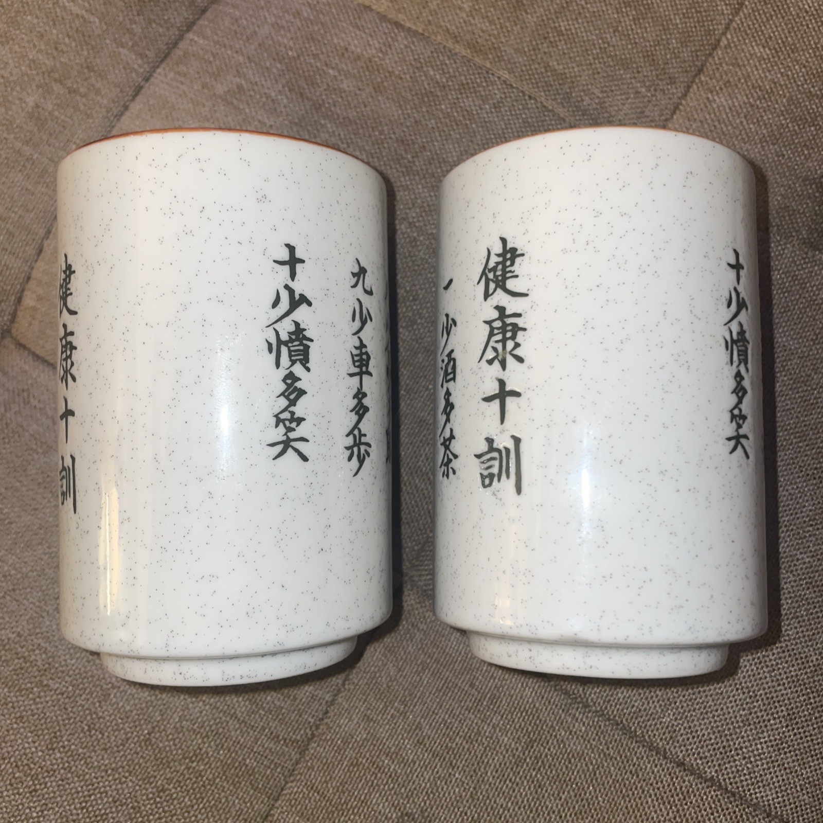 This set includes two Japanese sushi-style yunomi tea cups featuring kanji design in brown and cream. Condition is used; check the listing for details on any wear, marks, or variations in color and pattern. Ideal for tea service, display, or adding to an Asian ceramics collection within Collectibles. Free shipping is included, and the item will be packed for safe delivery. Check the listing for details on measurements, materials, and any additional information not provided here.