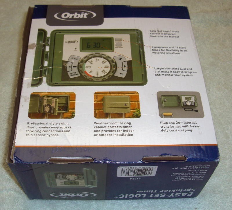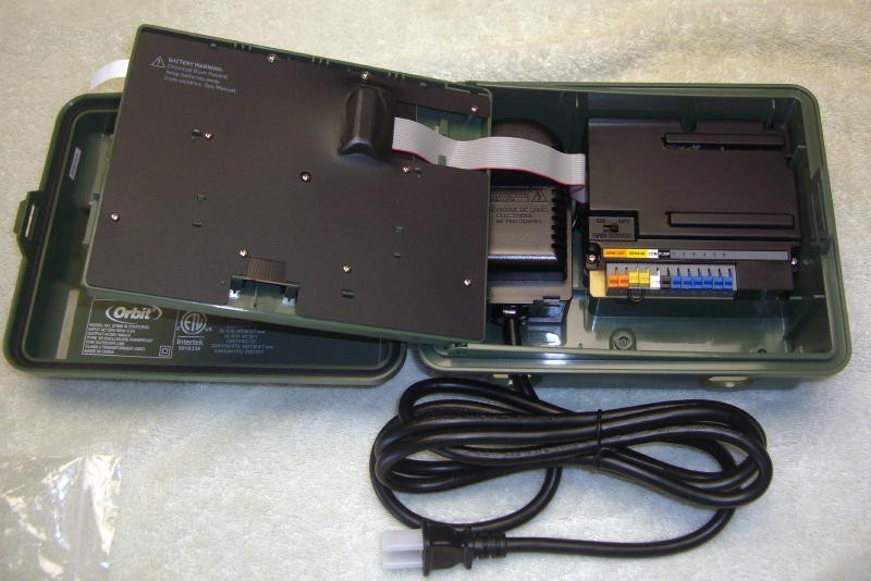 Like New - Never used. This new / open box unit is available from a landscape contractor's overstock. Includes Keys and installation screws. Still has pull tab protector on backup battery. Retail: ( on sale at Home Depot: $ 51.87 )Same day shipping on orders placed by 10AM PST/PDTFully Tested - This unit has been fully tested to ensure correct Front Pannel operation. Each zone and boost pump outputs tested and full on and off voltage confirmed for each.Install outdoors or indoors to control outdoor sprinklers. Manual operation ( On/Off ) for each station via front panel dial & buttons. 3 Programs with up to 4 Start Times can be added / modified via front panel dial & buttons.