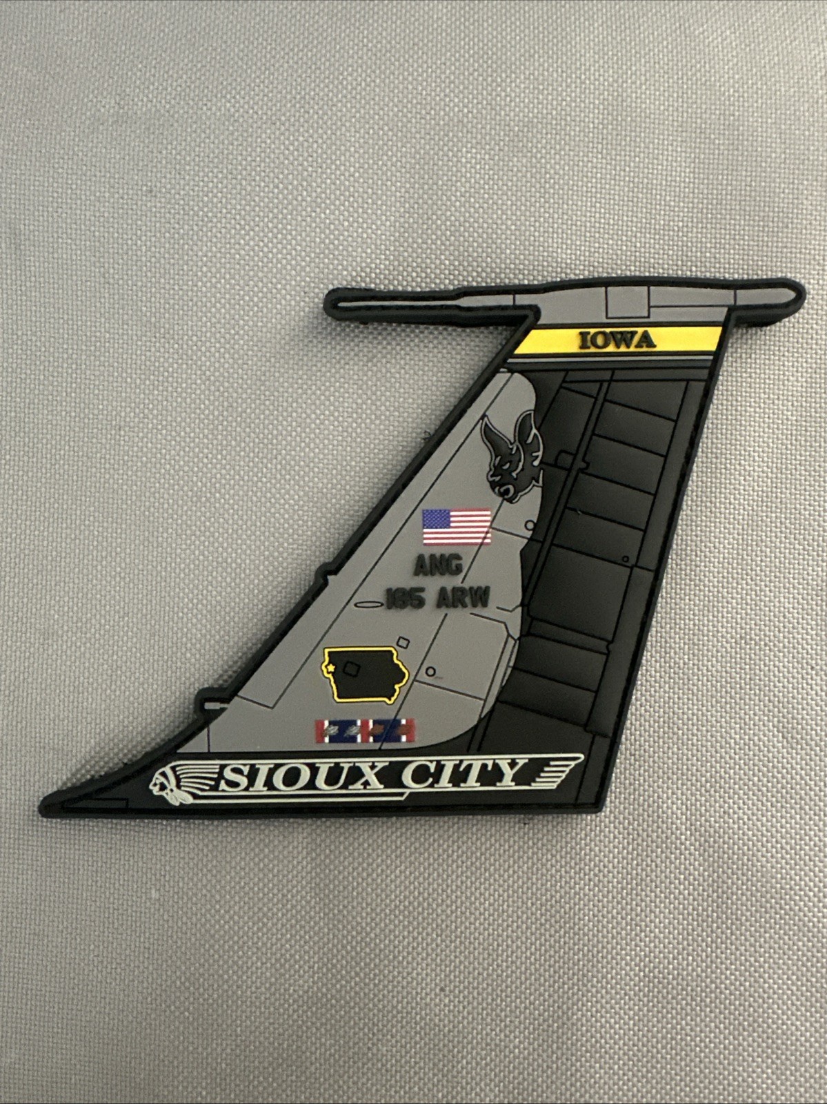 185 ARW KC-135 tail patch. PVC. 4” tall. Velcro sewn on back.