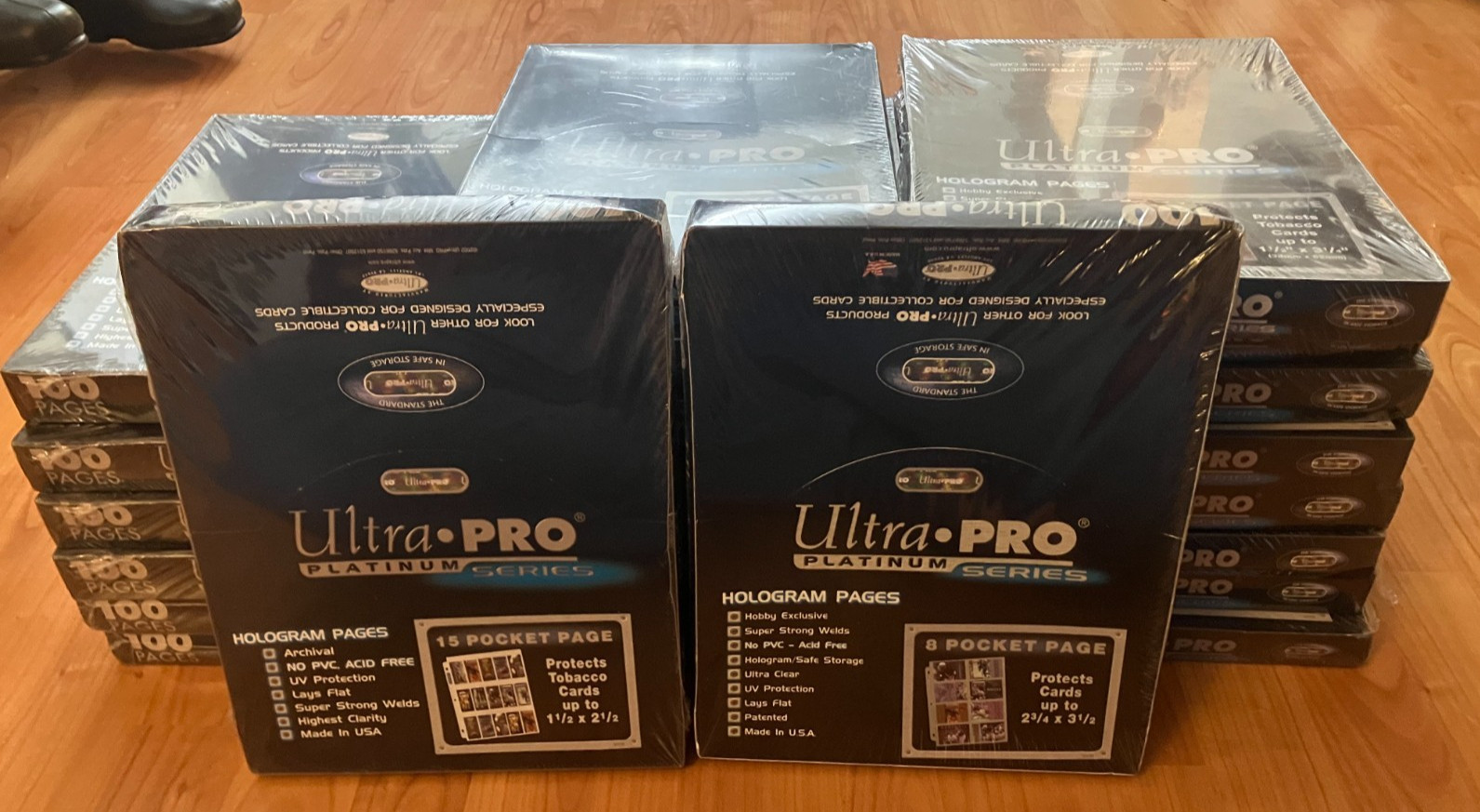 These Ultra Pro Platinum 15-pocket pages come in a box of 100 and are designed for storing and organizing tobacco-size trading cards, including T206. Condition is New. Free Shipping is included, making it easy to add protective storage pages to your collection without extra delivery cost. Check the listing for details.