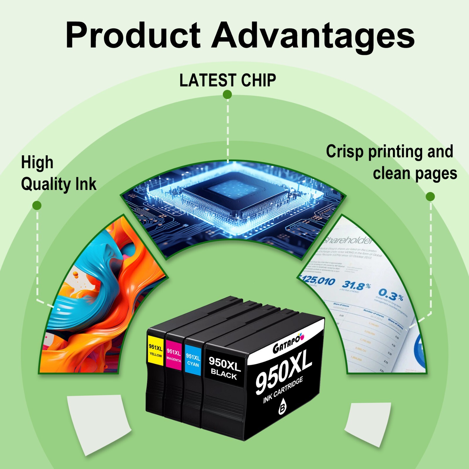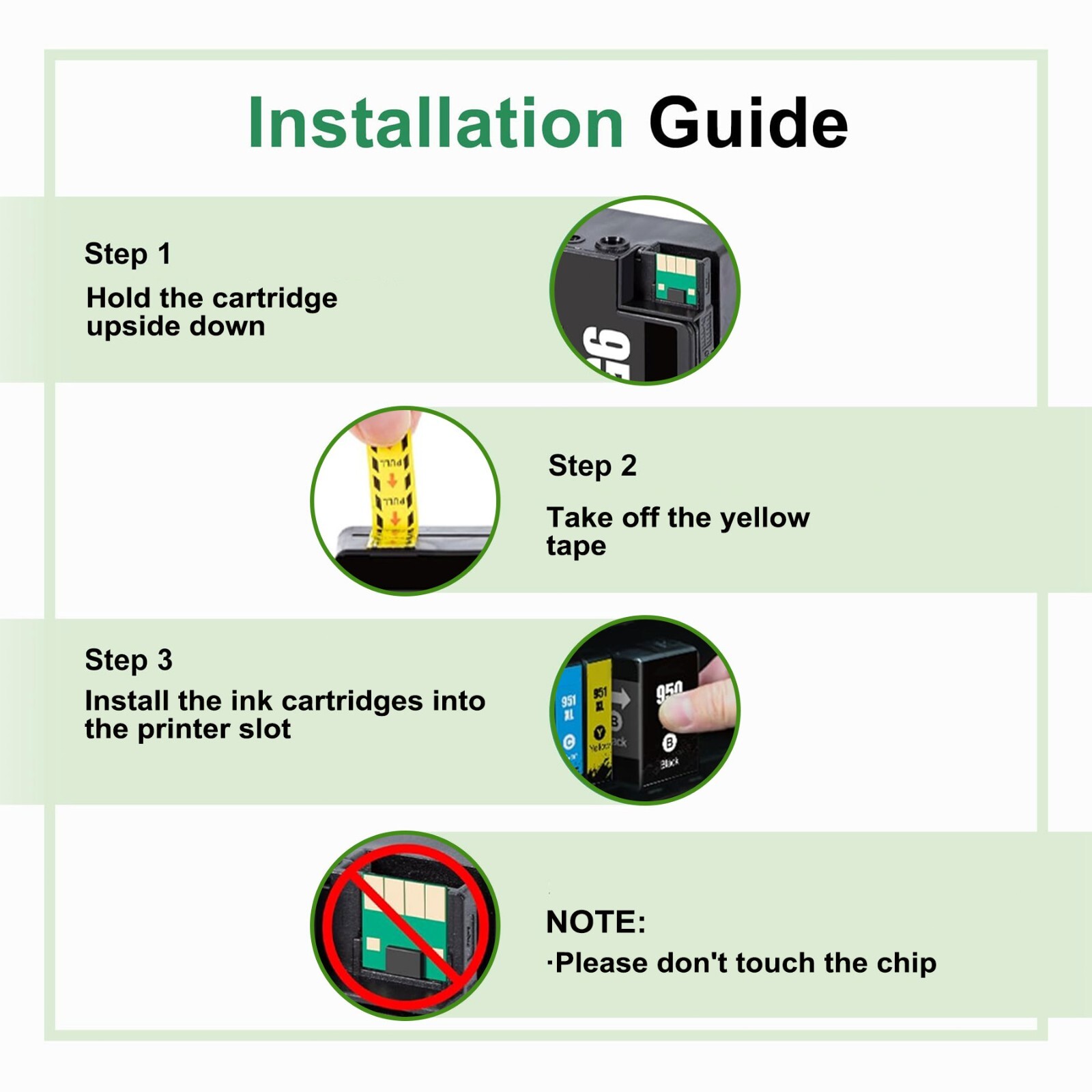 Work as OEM, Cheaper than OEM What you will get: 1 Pack 950XL Black Ink Cartridge 1 Pack 951XL Cyan Ink Cartridge 1 Pack 951XL Magenta Ink Cartridge 1 Pack 951XL Yellow Ink Cartridge Type: Printer Ink Cartridge Condition: