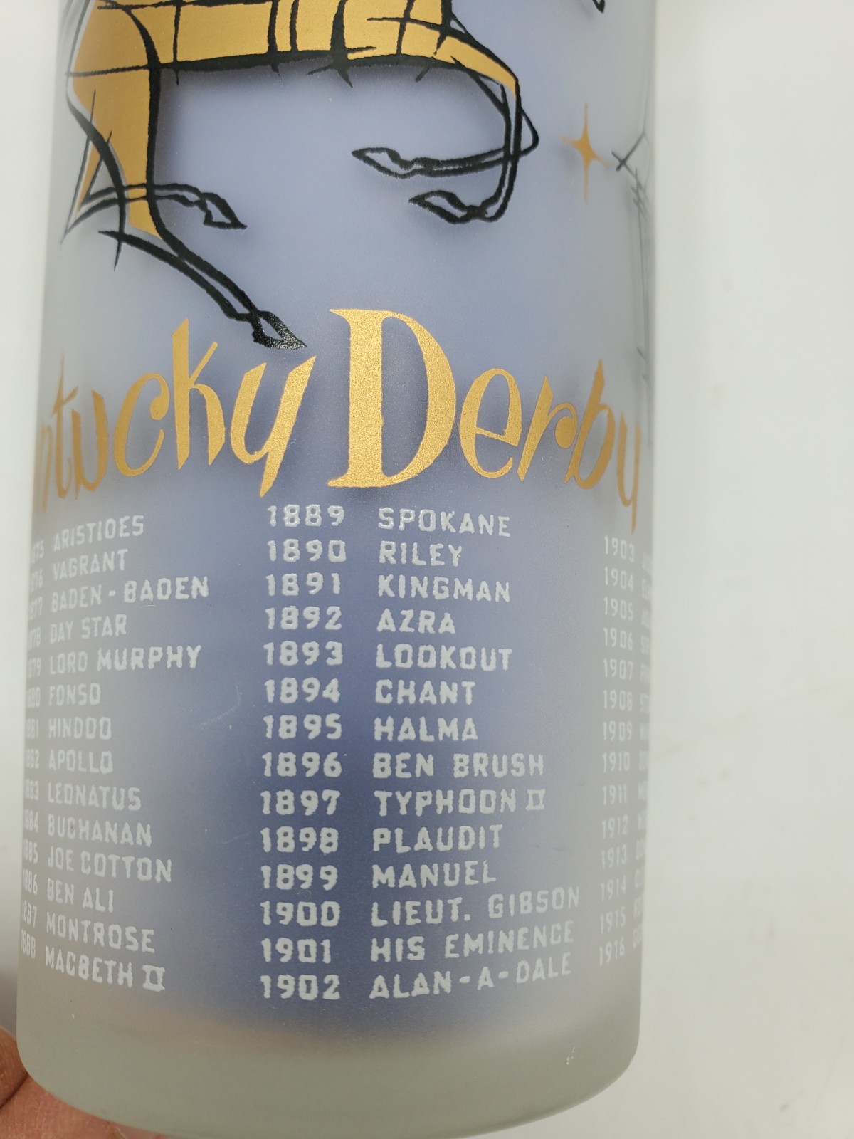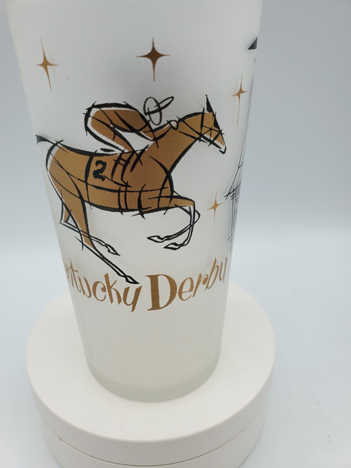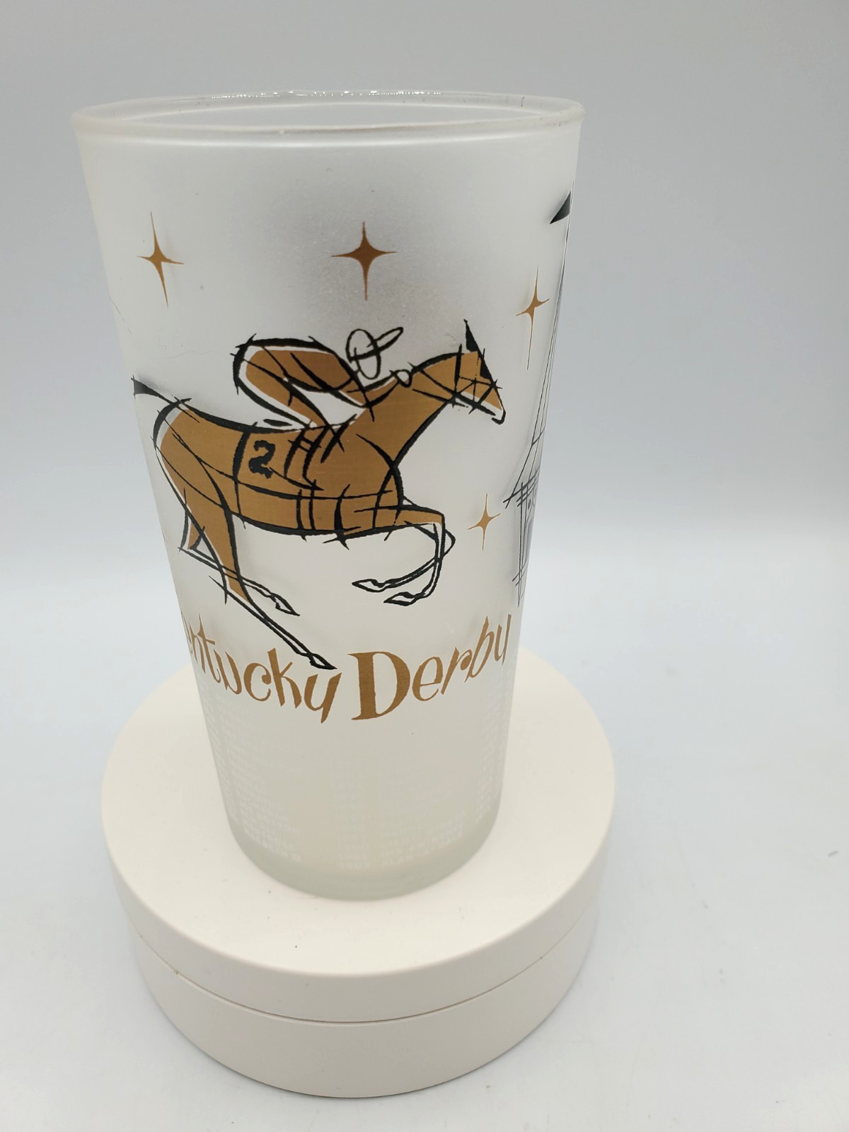 1957 Official Kentucky Derby Frosted Glass.Mint Julep Glass Tumbler.1956 Iron Liege.Made by Libbey Co. USA.Measures approx. 5 1/4" high x 2 3/4" across.Excellent condition. Very clean glasses. Great bright colors. Gold perfect on each glass.Glasses are double boxed.Have a large condition of Kentucky Derby Glasses. Smoke-free home.Should you need assistance with anything or have questions, please ask.I will be happy to help.Check out my other items!Be sure to add me to your favorites list!THANK YOU!Payment: is Due upon winning the Auction. Thank you.USA Shipping: Standard Shipping USPS: (estimated delivery 1-5 business days, Monday-Friday).NOTE: Shipping is posted on weekdays Monday-Friday, not Holidays or Sundays.Please be aware that the "estimated delivery date" is set by USPS and eBay.Tracking: All items come with tracking.Return Policy: allows for the return of an item within must respond in 3 days of its receipt.Buyer: pays shipping on returns.Please remember, that some items are not NEW unless stated so.Vintage, Antique, and New items: All sales are final unless the description is obviously inaccurate.I will make every effort to give an accurate description.If you have any questions, please ask before bidding.Should you need assistance with anything, I will be happy to help.Thank You. Happy Bidding. Kind regards, Seller relic
