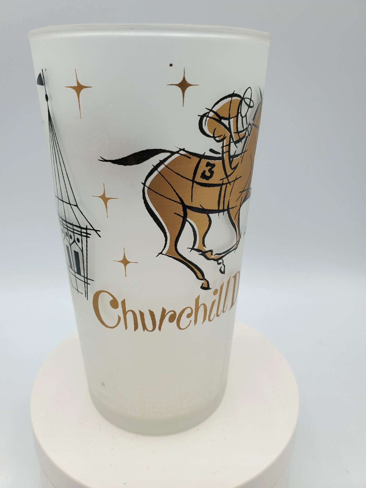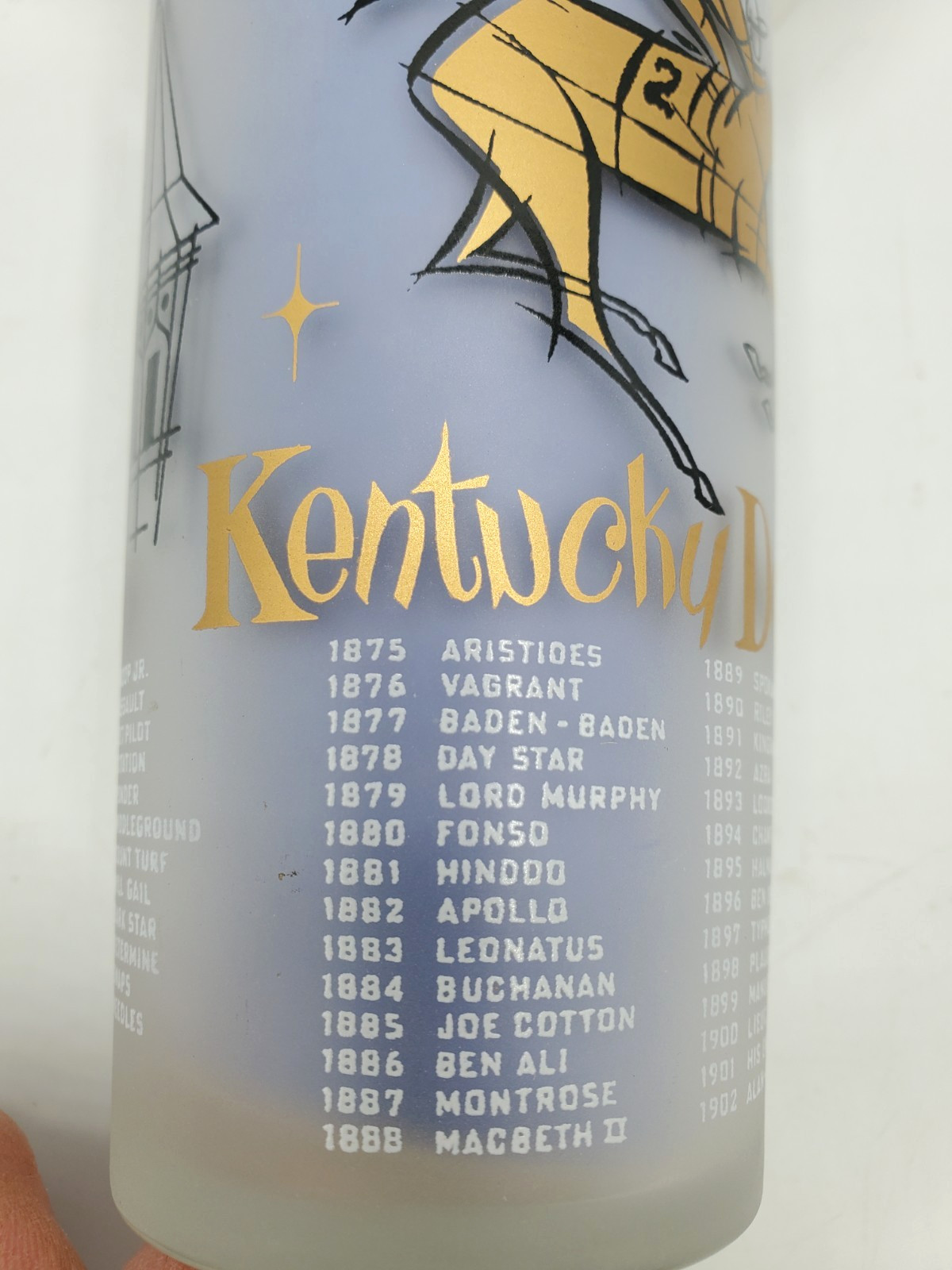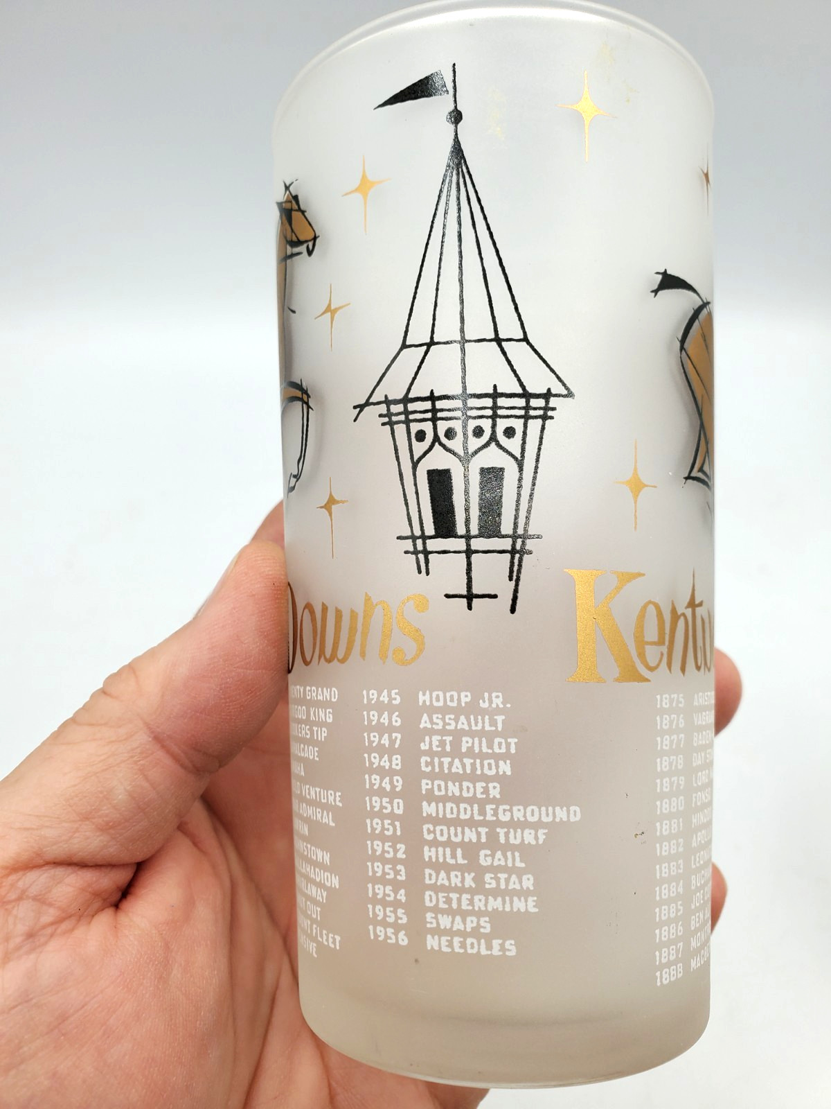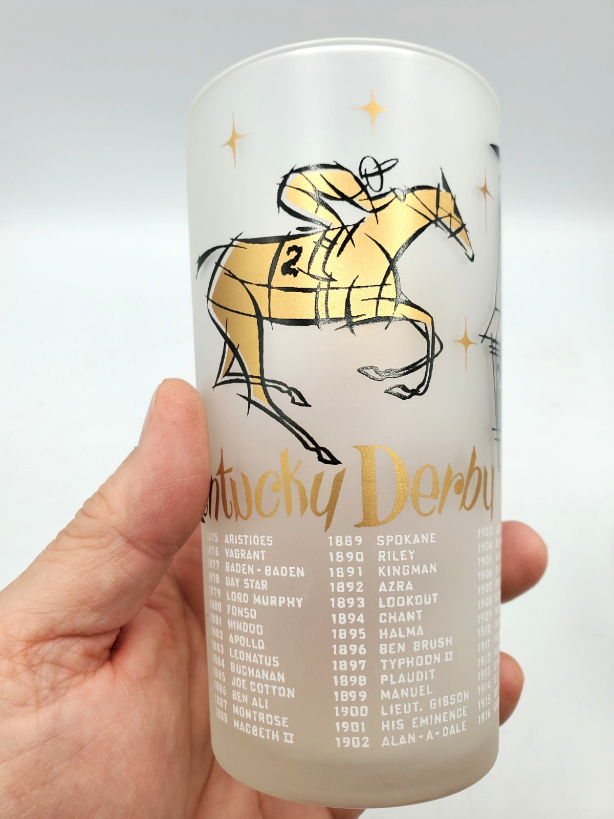 1957 Official Kentucky Derby Frosted Glass.Mint Julep Glass Tumbler.1956 Iron Liege.Made by Libbey Co. USA.Measures approx. 5 1/4" high x 2 3/4" across.Excellent condition. Very clean glasses. Great bright colors. Gold perfect on each glass.Glasses are double boxed.Have a large condition of Kentucky Derby Glasses. Smoke-free home.Should you need assistance with anything or have questions, please ask.I will be happy to help.Check out my other items!Be sure to add me to your favorites list!THANK YOU!Payment: is Due upon winning the Auction. Thank you.USA Shipping: Standard Shipping USPS: (estimated delivery 1-5 business days, Monday-Friday).NOTE: Shipping is posted on weekdays Monday-Friday, not Holidays or Sundays.Please be aware that the "estimated delivery date" is set by USPS and eBay.Tracking: All items come with tracking.Return Policy: allows for the return of an item within must respond in 3 days of its receipt.Buyer: pays shipping on returns.Please remember, that some items are not NEW unless stated so.Vintage, Antique, and New items: All sales are final unless the description is obviously inaccurate.I will make every effort to give an accurate description.If you have any questions, please ask before bidding.Should you need assistance with anything, I will be happy to help.Thank You. Happy Bidding. Kind regards, Seller relic