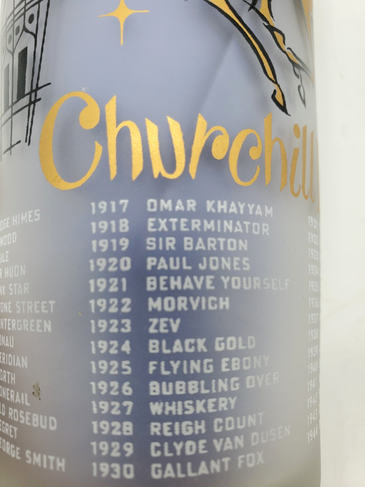 This Libbey 1957 Official Kentucky Derby frosted mint julep glass tumbler featuring Iron Liege is offered in excellent condition. The glass is very clean with bright colors, and the gold detailing is described as perfect. It will be double boxed for added protection in transit. Free shipping is included. Check the listing for details.
