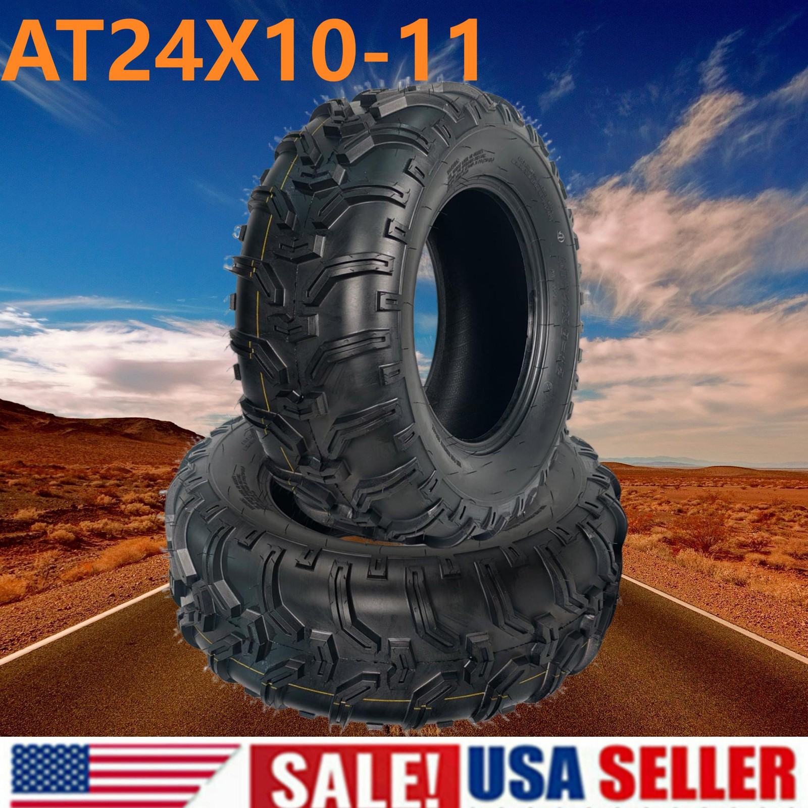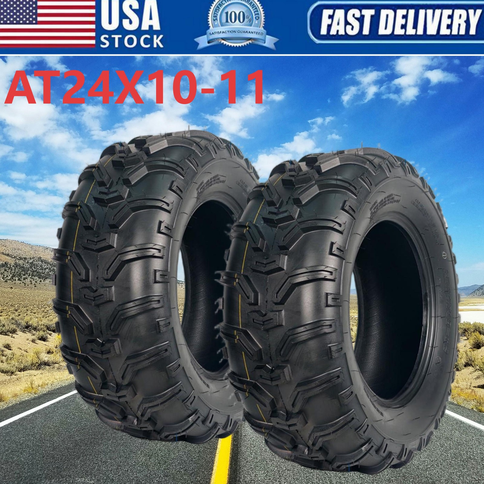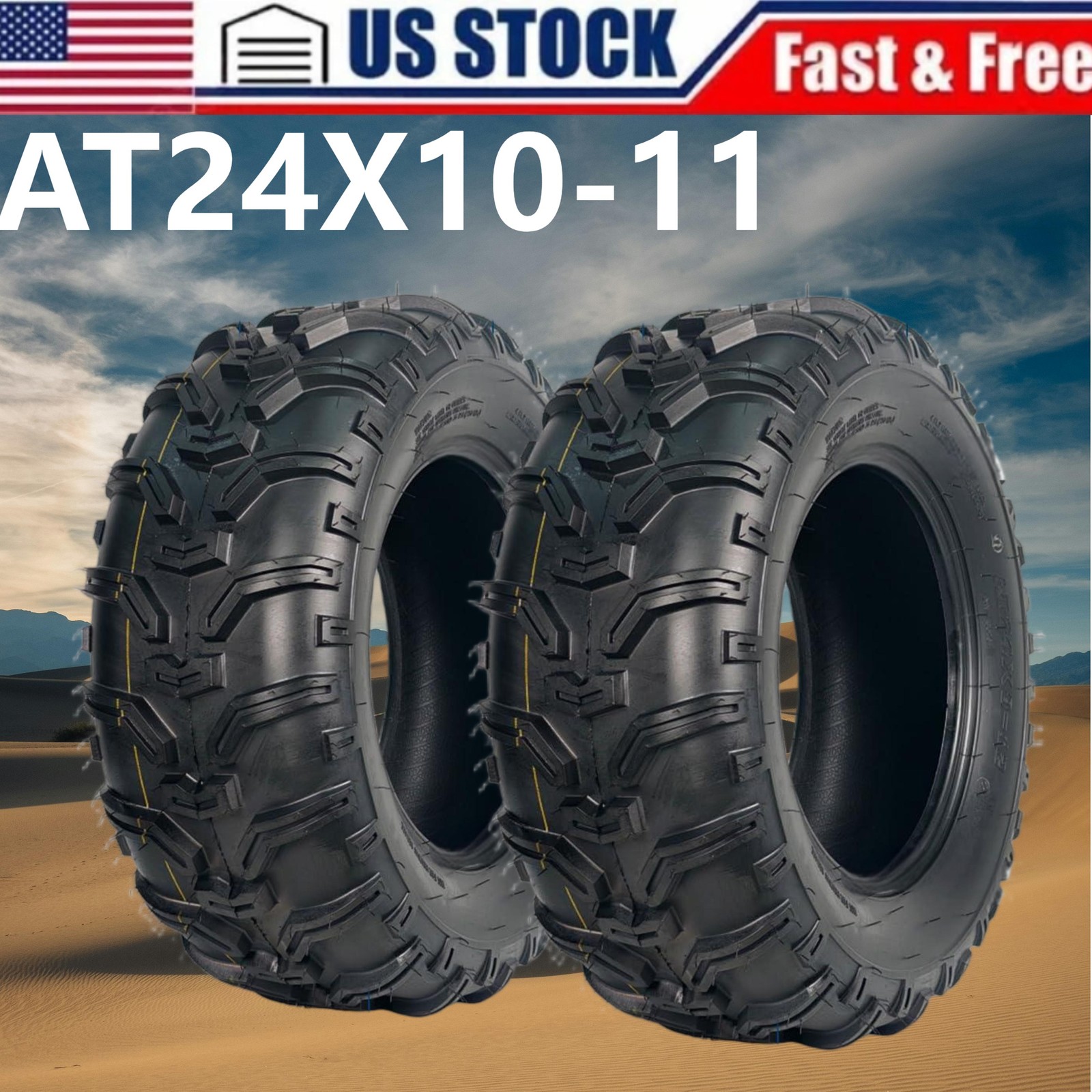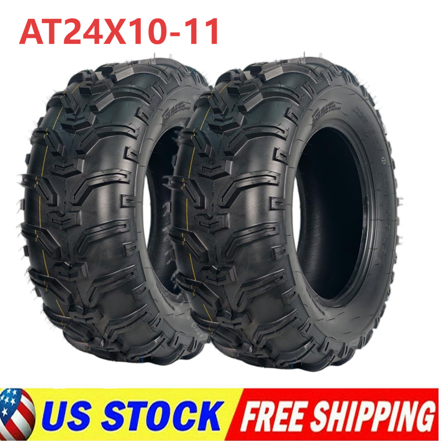 Tire Parameters: max load:340 lbs;Rim Diameter: 11;Rim Width: 6.5;speed index:43F Engineered for durability: This 6PR-rated construction tire offers enhanced load capacity and superior puncture resistance. Compared to standard 8PR tires, the 6PR design features more flexible sidewalls and tread blocks. This increased flexibility improves impact absorption, resulting more comfortable ride over rough terrain. Non-directional Tread Pattern: These atv tires feature deep, widely spaced lugs that excel at shedding mud and performing across diverse terrain. The open tread pattern also makes them much easier to clean after use. All-Terrain Capability: It delivers superior traction and precise control on hardpack surfaces, moderate trails, loose clay, and sandy conditions. Its proven design ensures2 Pack 24x10-11 ATV Tires 24x10x11 ATV UTV Tires 24 10 11 All Terrain Tires 6PR About the item: 💯Tire Parameters: max load:340 lbs;Rim Diameter: 11;Rim Width: 6.5;speed index:43F 💯Engineered for durability: This 6PR-rated construction tire offers enhanced load capacity and superior puncture resistance. Compared to standard 8PR tires, the 6PR design features more flexible sidewalls and tread blocks. This increased flexibility improves impact absorption, resulting more comfortable ride over rough terrain. 💯Non-directional Tread Pattern: These atv tires feature deep, widely spaced lugs that excel at shedding mud and performing across diverse terrain. The open tread pattern also makes them much easier to clean after use. 💯All-Terrain Capability: It delivers superior traction and precise control on hardpack surfaces, moderate trails, loose clay, and sandy conditions. Its proven design ensures reliable performance in diverse settings, from densely wooded areas to challenging desert landscapes. 💯All-Season Versatility: Designed for year-round performance, this tire provides strong traction and control, effortlessly adapting to various weather and terrain. Packing List:2 x ATV Tires1 x User ManualFriendly Note:1. Inspect Models Before Purchase: Before purchasing, please carefully verify your ATV's tire