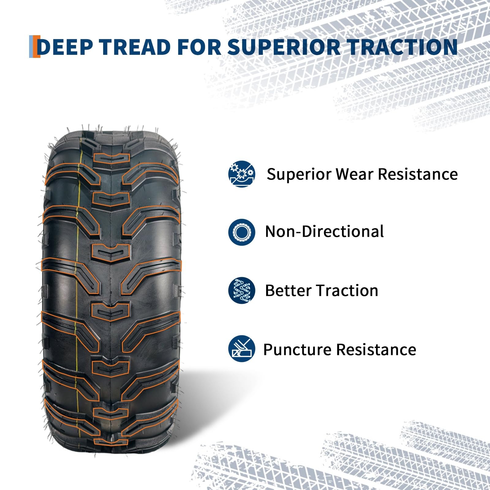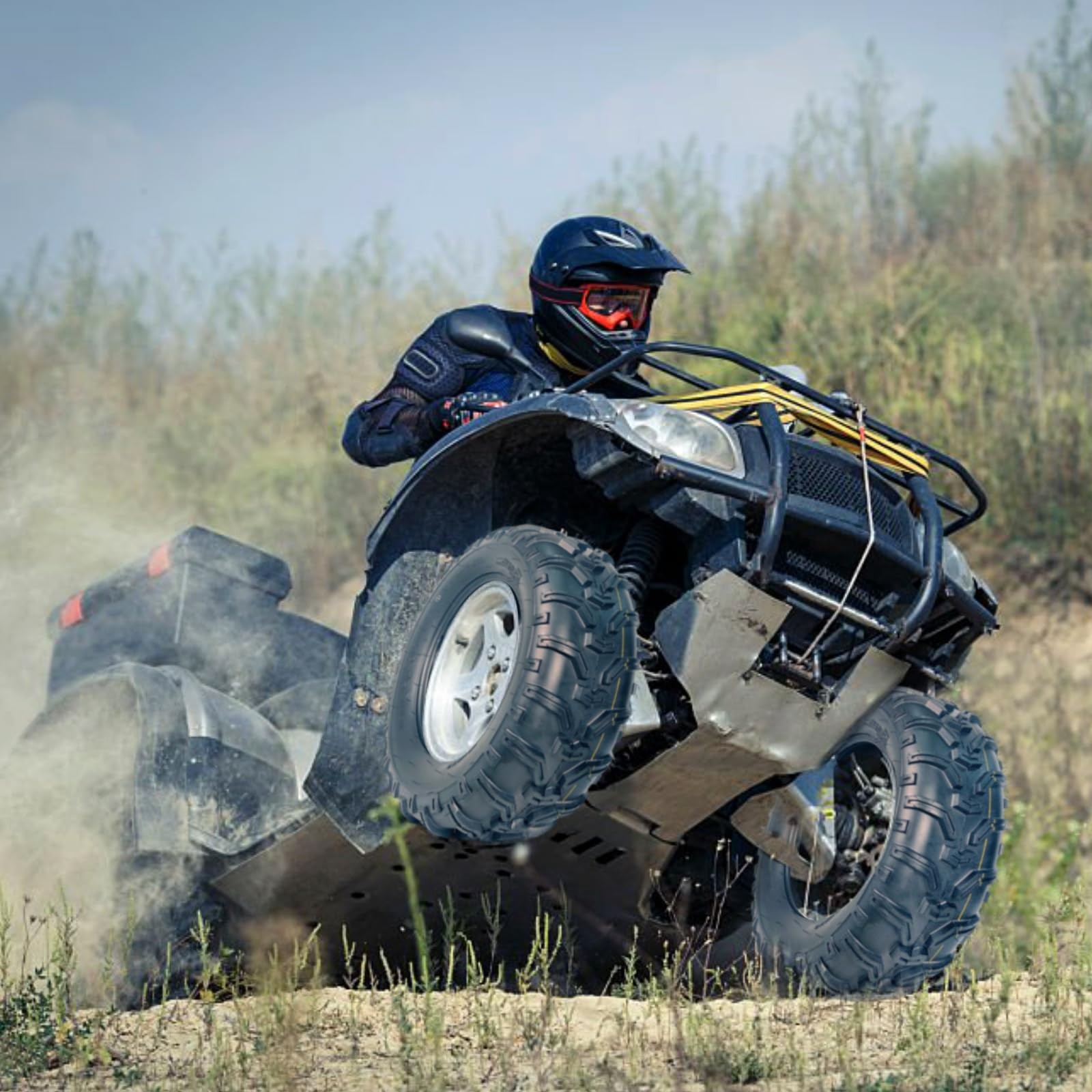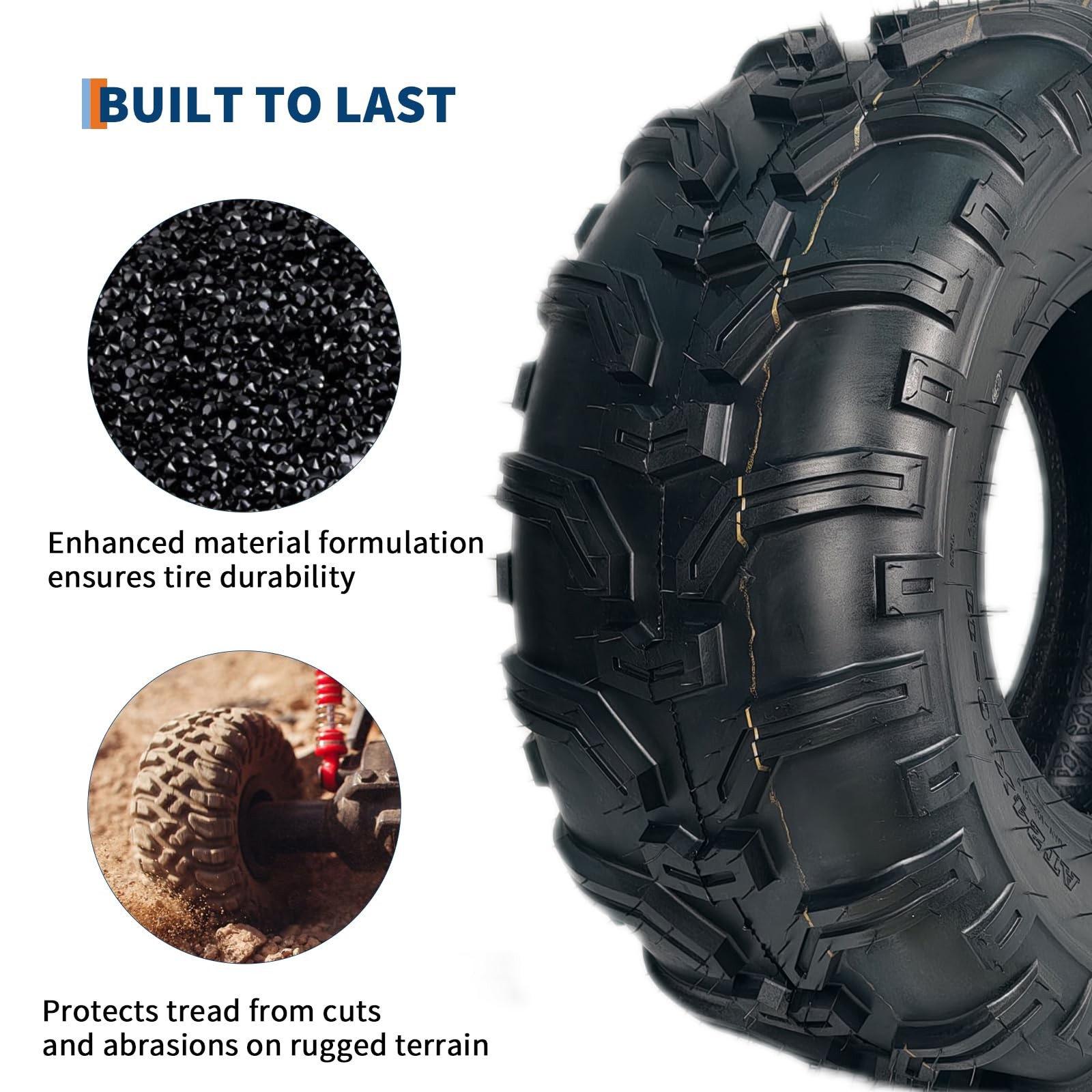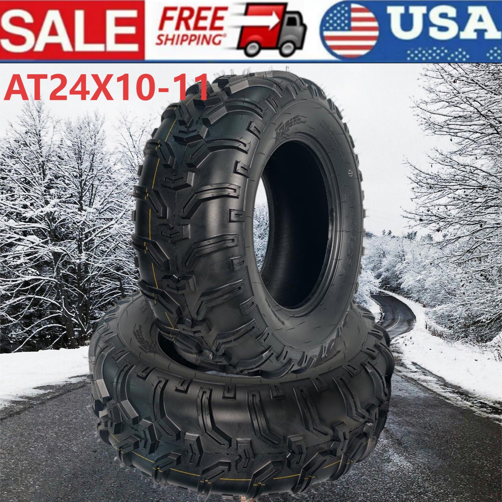 Tire Parameters: max load:340 lbs;Rim Diameter: 11;Rim Width: 6.5;speed index:43F Engineered for durability: This 6PR-rated construction tire offers enhanced load capacity and superior puncture resistance. Compared to standard 8PR tires, the 6PR design features more flexible sidewalls and tread blocks. This increased flexibility improves impact absorption, resulting more comfortable ride over rough terrain. Non-directional Tread Pattern: These atv tires feature deep, widely spaced lugs that excel at shedding mud and performing across diverse terrain. The open tread pattern also makes them much easier to clean after use. All-Terrain Capability: It delivers superior traction and precise control on hardpack surfaces, moderate trails, loose clay, and sandy conditions. Its proven design ensures2 Pack 24x10-11 ATV Tires 24x10x11 ATV UTV Tires 24 10 11 All Terrain Tires 6PR About the item: 💯Tire Parameters: max load:340 lbs;Rim Diameter: 11;Rim Width: 6.5;speed index:43F 💯Engineered for durability: This 6PR-rated construction tire offers enhanced load capacity and superior puncture resistance. Compared to standard 8PR tires, the 6PR design features more flexible sidewalls and tread blocks. This increased flexibility improves impact absorption, resulting more comfortable ride over rough terrain. 💯Non-directional Tread Pattern: These atv tires feature deep, widely spaced lugs that excel at shedding mud and performing across diverse terrain. The open tread pattern also makes them much easier to clean after use. 💯All-Terrain Capability: It delivers superior traction and precise control on hardpack surfaces, moderate trails, loose clay, and sandy conditions. Its proven design ensures reliable performance in diverse settings, from densely wooded areas to challenging desert landscapes. 💯All-Season Versatility: Designed for year-round performance, this tire provides strong traction and control, effortlessly adapting to various weather and terrain. Packing List:2 x ATV Tires1 x User ManualFriendly Note:1. Inspect Models Before Purchase: Before purchasing, please carefully verify your ATV's tire
