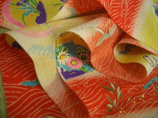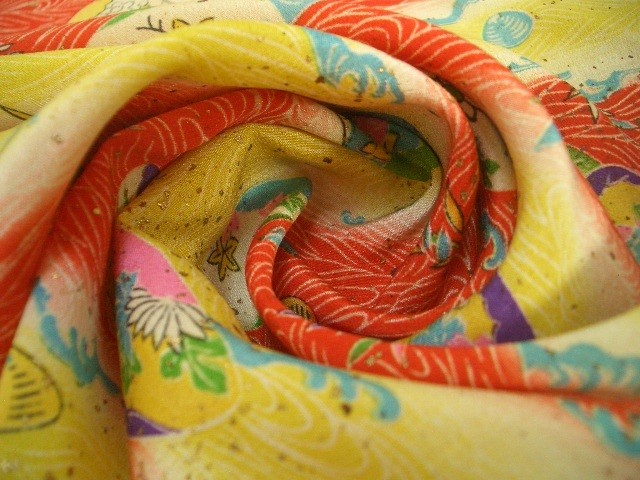 Description Boro Used Japanese Old Cloth Japan Antique Silk Scraps With Shell And FlowersThe