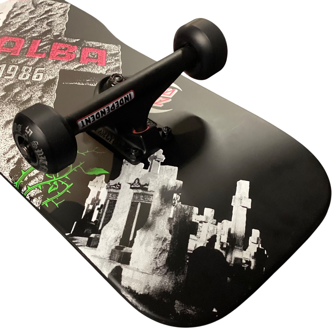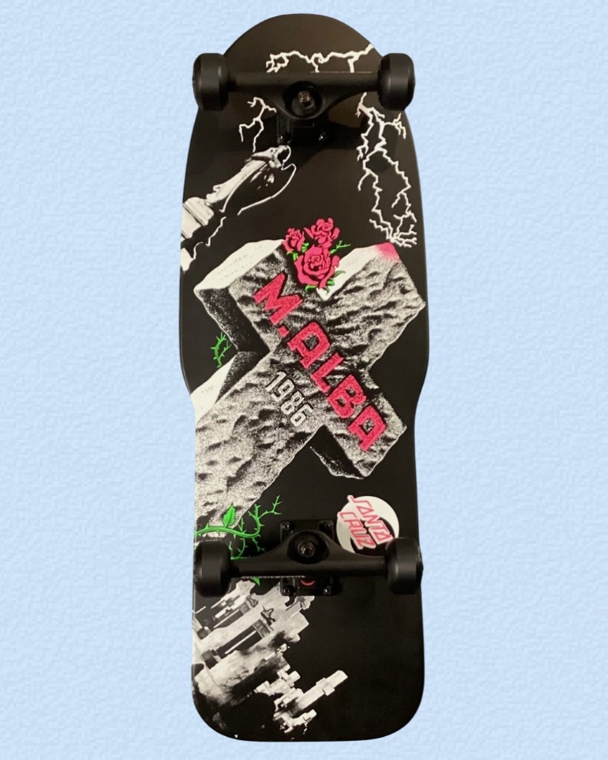Santa Cruz 50th Anniversary Malba Tombstone 10.24 Custom Complete Skateboard New in poly bag Premium, custom complete 10.24 x 29.72 (15.75 wheelbase) Comes fully assembled Shipped with care! Components: Santa Cruz 50th Anniversary Malba Tombstone 10.24 Reissue Deck Independent Stage 11 Bar Flat Black 159mm Trucks Spitfire Burners Black 54mm 99a Wheels Independent GP-B Black Bearings Independent 1" Black Phillips Head Hardware Shorty’s Cones 100a Hard Black Bushings Jessup Custom Cut Grip Tape