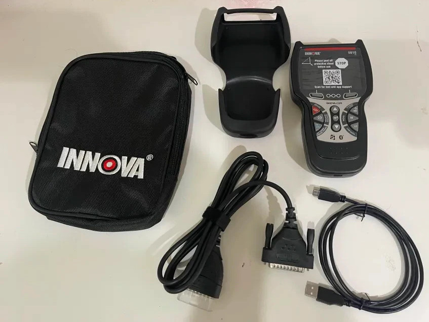 Brand new, unused Innova 5610 V2 diagnostic scanner in open box condition. Includes the 5610 Scanner, Scanner Cable, USB-C Cable, Case Protector and an Official Innova carrying bag. Perfect for advanced diagnostics with professional-grade features including ABS, SRS, live data, and bidirectional control.