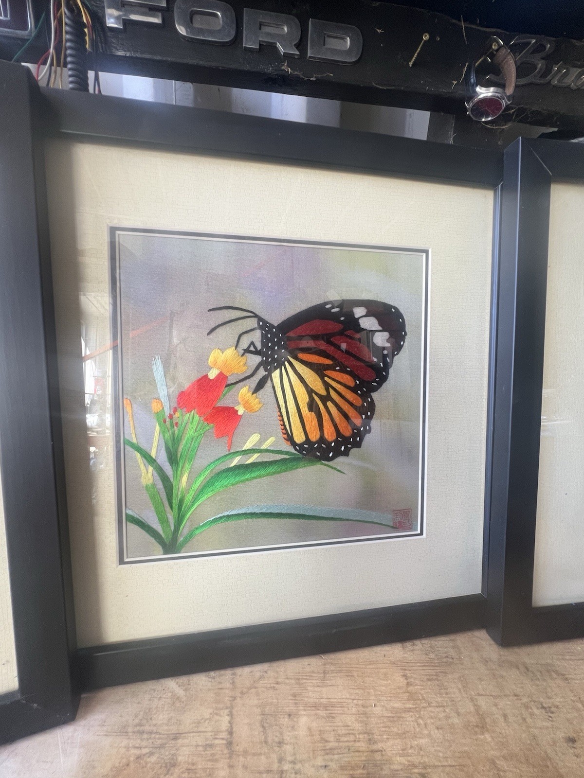 Suzhou Fine Silk Threads Embroidery Butterfly Art Framed Handmade Sz 13x13 Great condition