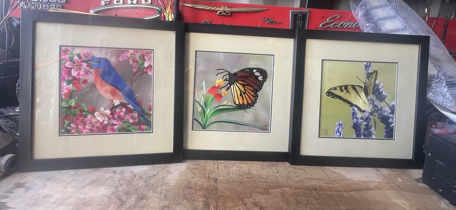 This set of 3 Suzhou Fine Silk Threads butterfly embroidery pictures is a collectible handmade framed art lot. Each piece measures approximately 13” x 13” including the frame, as noted in the listing. The set is described as being in great condition. Free shipping is included for delivery to the buyer. Check the listing for details on materials, stitching style, backing, signatures, and any minor wear to frames or glass.