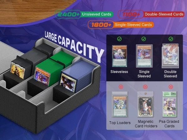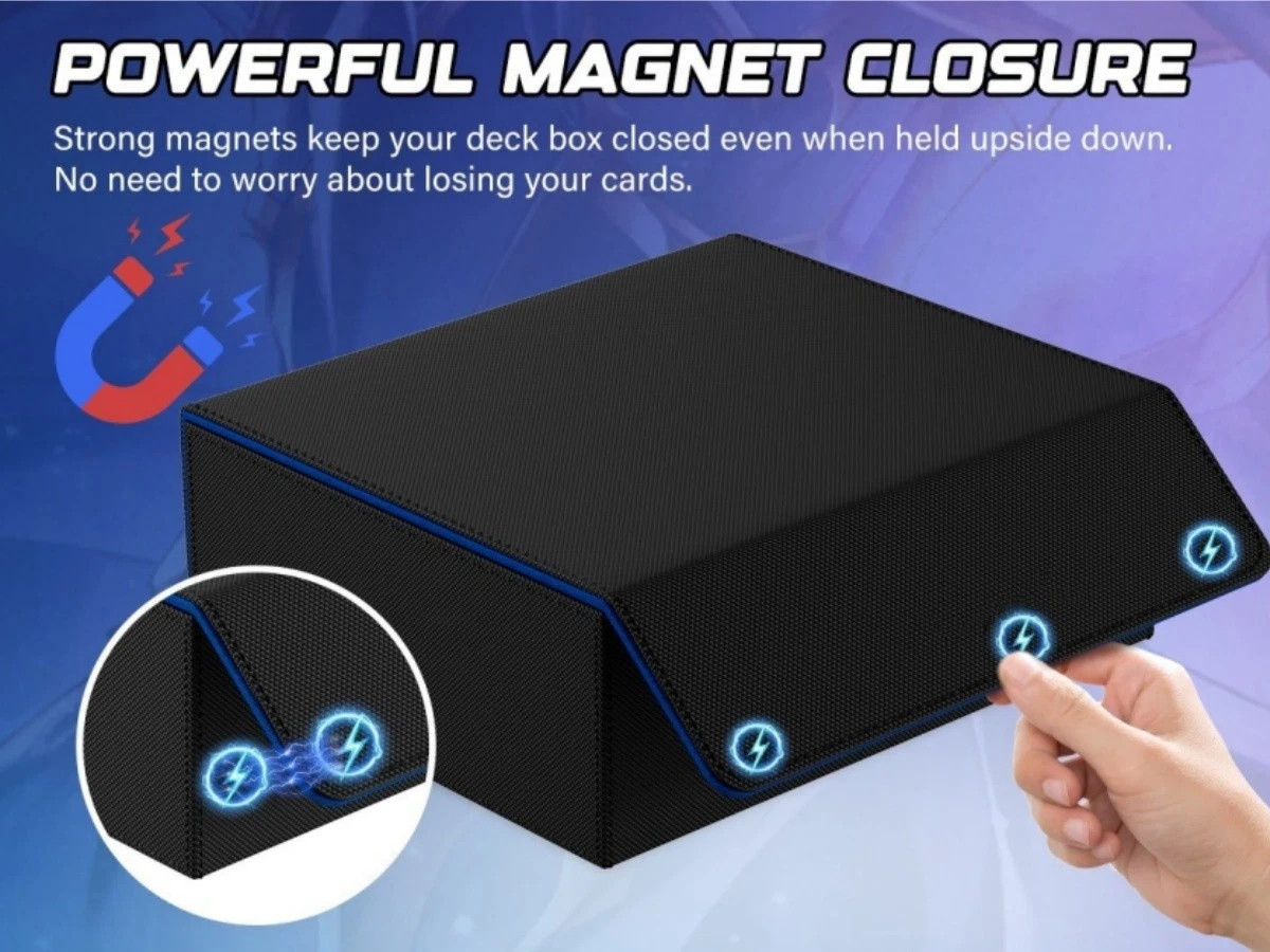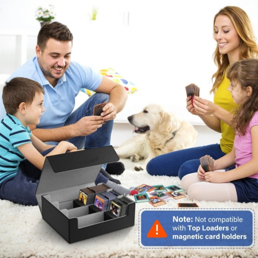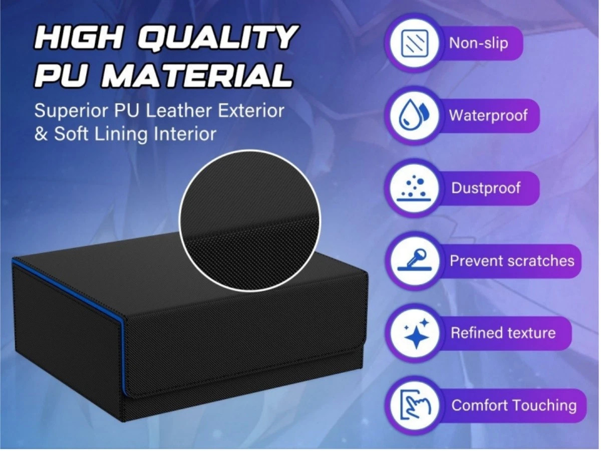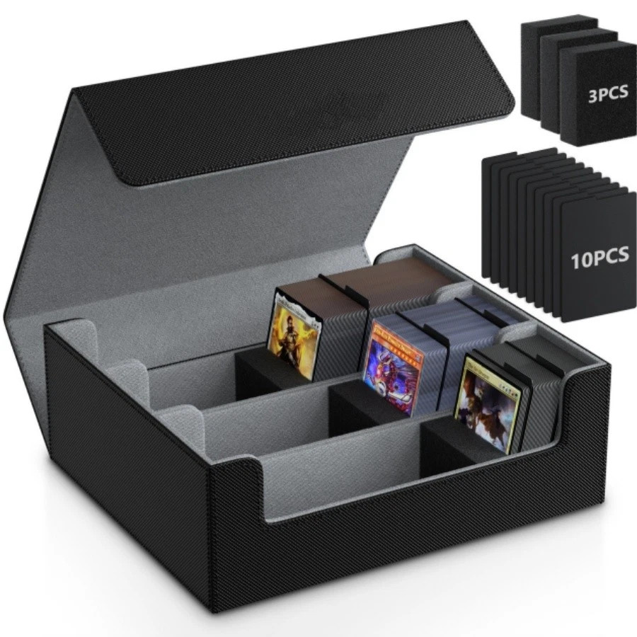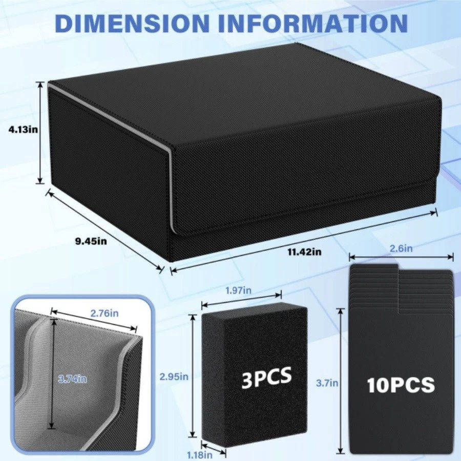Trading Card Storage Box for 1800+, Leather Storage Box with Strong Closure, Card Box with 10 Dividers and 3 Foam Stoppers, Commander Deck Box Fit YuGiOh, MTG and Sport Cards, Black & GrayAbout this itemPremium Quality and Superior Protection: Our trading card storage box features waterproof PU leather and a soft microfiber lining to prevent scratches and creases. Durable MTG deck box ensures long-lasting protectionEffortless Card Organization: Our card storage box Includes 10 card dividers and 3 foam stoppers to keep your cards upright and neatly arranged. The strong magnetic closure ensures the card deck box stays securely shut, even when overturned, keeping your cards safe and damage-freeHolds 1800+ Cards: Measuring 11.42 x 9.45 x 4.13 inches, this card box can store 1800+ single-sleeved cards, 1100+ double-sleeved cards, or 2400+ unsleeved cards, making it ideal for collectors with large collectionsPerfect Gift for Card Collectors: An ideal gift for card enthusiasts, this card case helps organize collections with ease. Perfect for family, friends, or loved ones who enjoy trading card games or collecting, it’s both practical and thoughtfulDedicated Customer Support: Your satisfaction is our priority. If you have any issues, contact us for prompt assistance. Note: Not compatible with Top Loaders or magnetic card holdersOn Jun 3, 2025 at 01:57:08 PDT, seller added the following information:.dc_tracker_img .dc_tracker_img:last-of-type p:empty+hr hr+span.ebay,hr+*>span.ebay