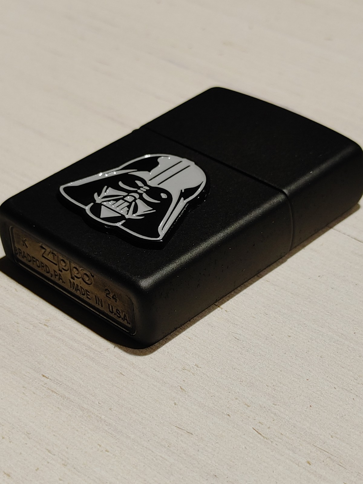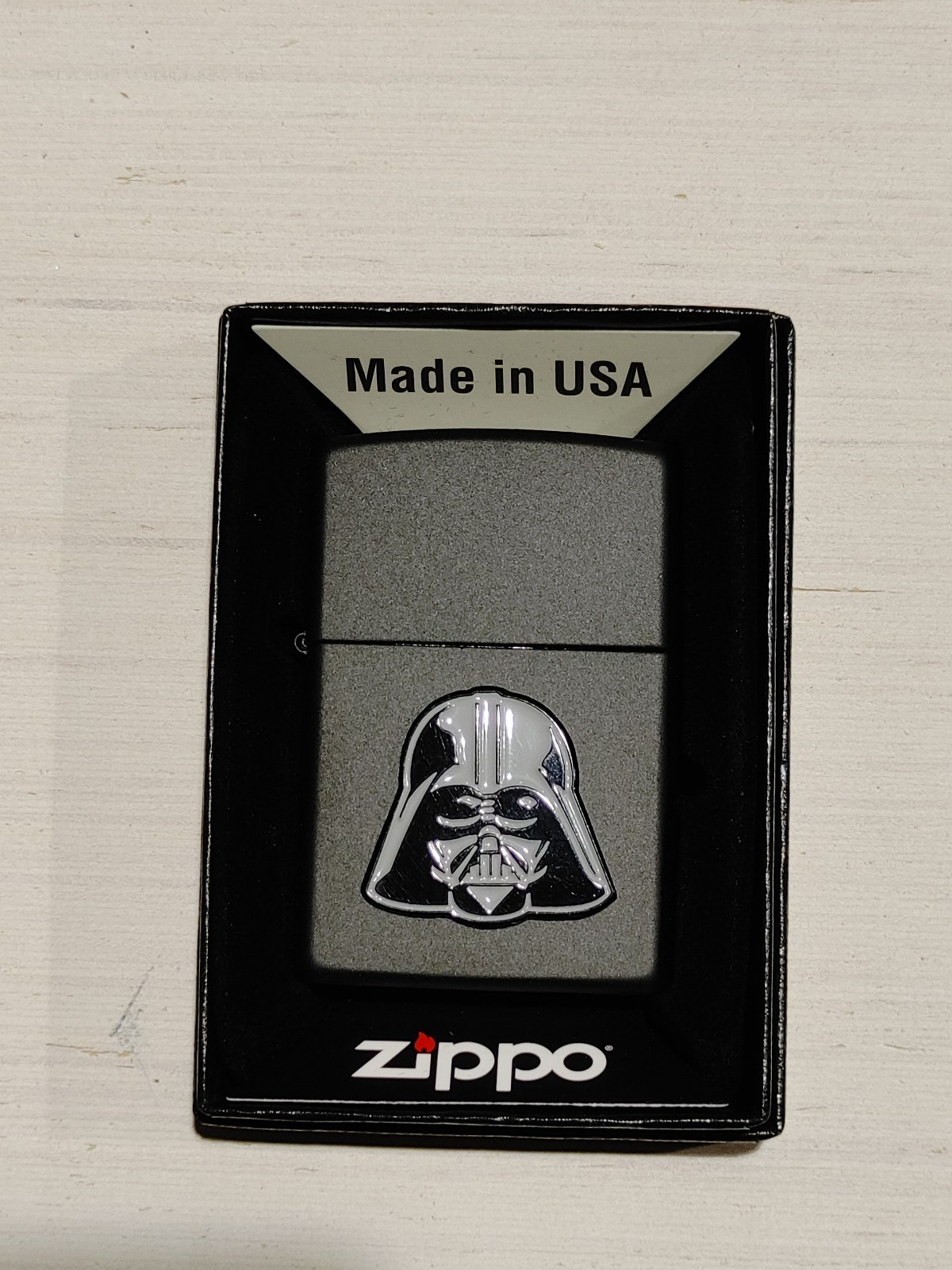 This custom Darth Vader Star Wars Zippo lighter features a raised emblem design and is listed as New. It’s a collectible item suited for fans of Star Wars and Zippo-themed memorabilia. Free Shipping is included with purchase, helping you estimate the total cost upfront. The description does not provide additional specifications or package contents, so check the listing for details on finish, dimensions, included box or paperwork, and any other features. Price: 58.95 USD.