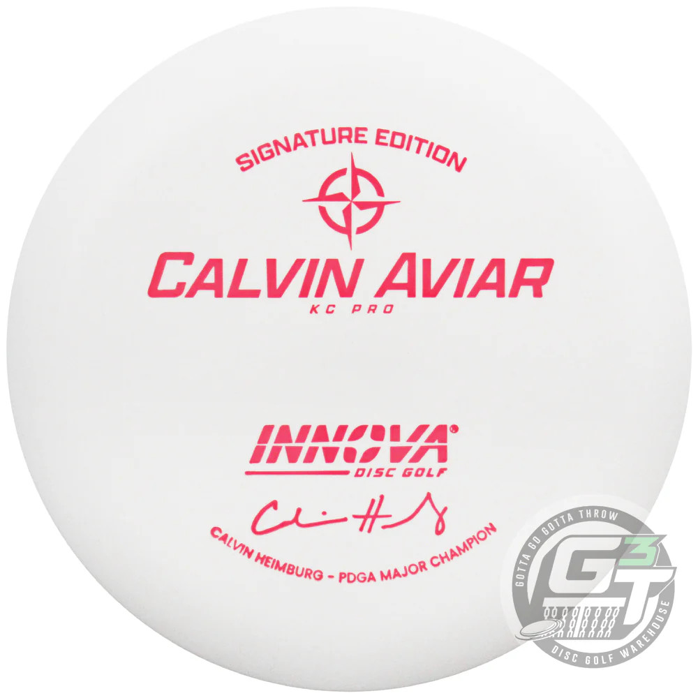 color available within the weight range you ordered is chosen at random from the stock we have on hand.If you have specific requests you can add a NOTE TO SELLER when checking out with color/weight preferences. WE DO COMBINE SHIPPING!!!$4.95 for the first disc / $2.25 for each additional [U.S. Only]To receive the rates above - checkout and pay for all of your items in ONE transaction.If shipping seems unusually high, please message us after you pay so we can look into it._________________________________________________________________________________________International orders are shipped using the GLOBAL SELLERS PROGRAM.We CANNOT send an invoice for combined shipping for these orders, sorry.QUESTIONS OR CONCERNS?Please message us, we are here MONDAY thru FRIDAY 9AM to 5PM CST_________________________________________________________________________________________ NEW Innova Heimburg PDGA Major Champion Pro KC Aviar - COLORS WILL VARY Calvin's Favorite in Super White KC Pro. Calvin Heimburg's season-defining moment came at the European Disc Golf Festival — a clutch putt for his first Major title. Last weekend at the 2025 DGPT Championship, it was another pivotal 56-footer on Hole 15 of the final round that helped carry him to victory. Only this time, he was using his own signature putter. Calvin quote The Calvin Aviar delivers the same firm, confident feel trusted by top pros for years — now with Vinny's name on it. A Signature Edition Big Bead Aviar molded exclusively in Super White KC Pro (just how he likes it), this putter matches Calvin’s game: clean, precise, and built for big moments. Manufacturer's Flight Ratings: Speed Glide Turn Fade 2 3 0 2 Joe's Universal Flight Chart: RNG HSS LSS PWR 2 0 +2 1