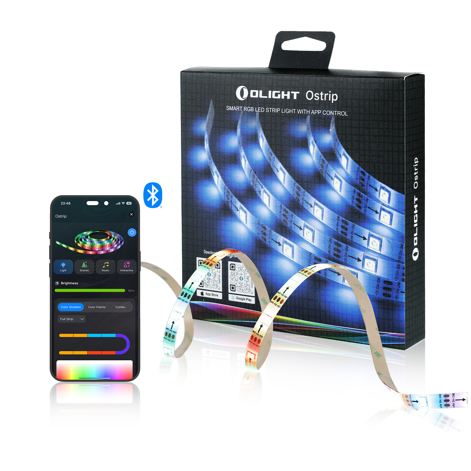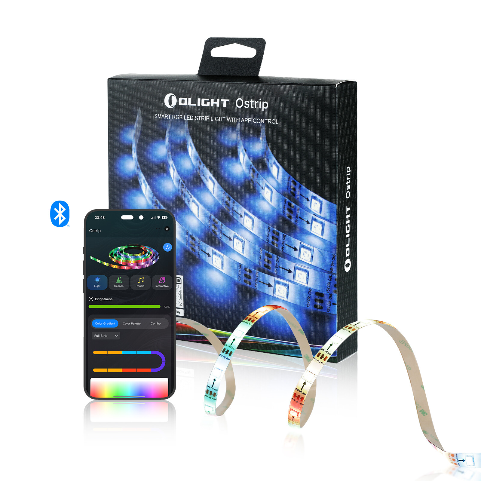 OLIGHT Baldr Mini Tactical Flashlight 600 Lumen Rechargeable Weapon Light Pistol87.47 USD 124.95 USDFree shipping30%offOlight Baton 3 Pro 1500 lumens Rechargeable Flashlight CW light Handheld Torch48.99 USD 69.99 USDFree shipping30%offOlight Oclip Pro Clip on Flashlight with Floodlight, Spotlight, Red Light Orange31.99 USD 39.99 USDFree shipping20%offOlight Sphere Snowflake Red Ambient Light Pleasant Design Meets 360° Lighting13.99 USD 19.99 USDFree shipping30%offOstrip * When powered on for the first time in factory default mode or the unpaired state, the strip light can be searched for and added to the app. It will directly enter the searchable state without the triple-click operation. Technical DetailsGENERAL DATALight Source5050 RGB LEDsInputUSB-A DC 5V/1A 5WTECHNICAL CHARACTERISTICSWeight6.7 oz (190 g) (including cable)WaterproofIPX4LengthLight Strip: 16.4 ft/5 m; Cable: 4.9 ft/1.5 mLIGHTING LEVELSRed Light8~55 lumensGreen Light4~36 lumensBlue Light20~150 lumensPACKAGE CONTENTS●Ostrip x 1●Screw x 8●Mounting Clip x 8●User Manual x 1