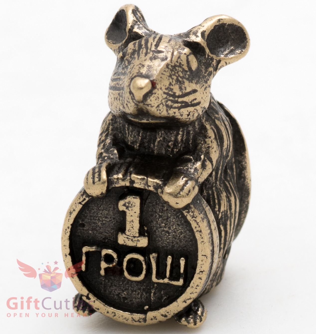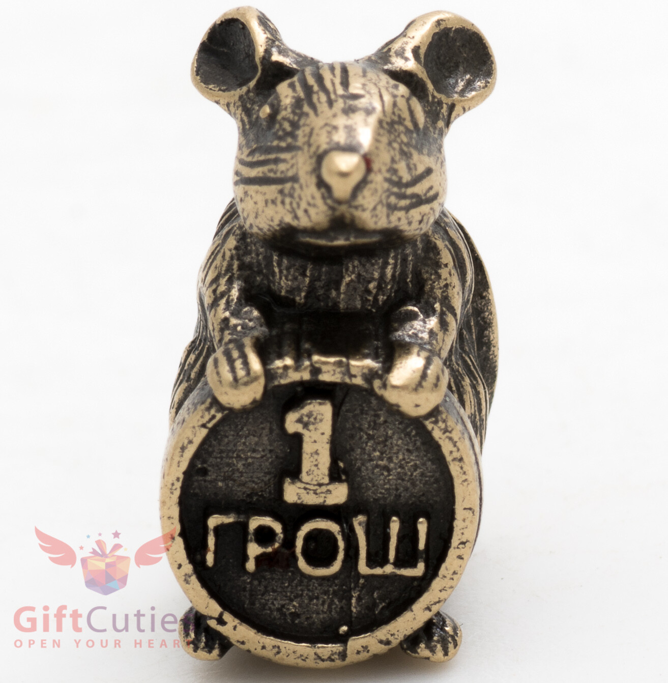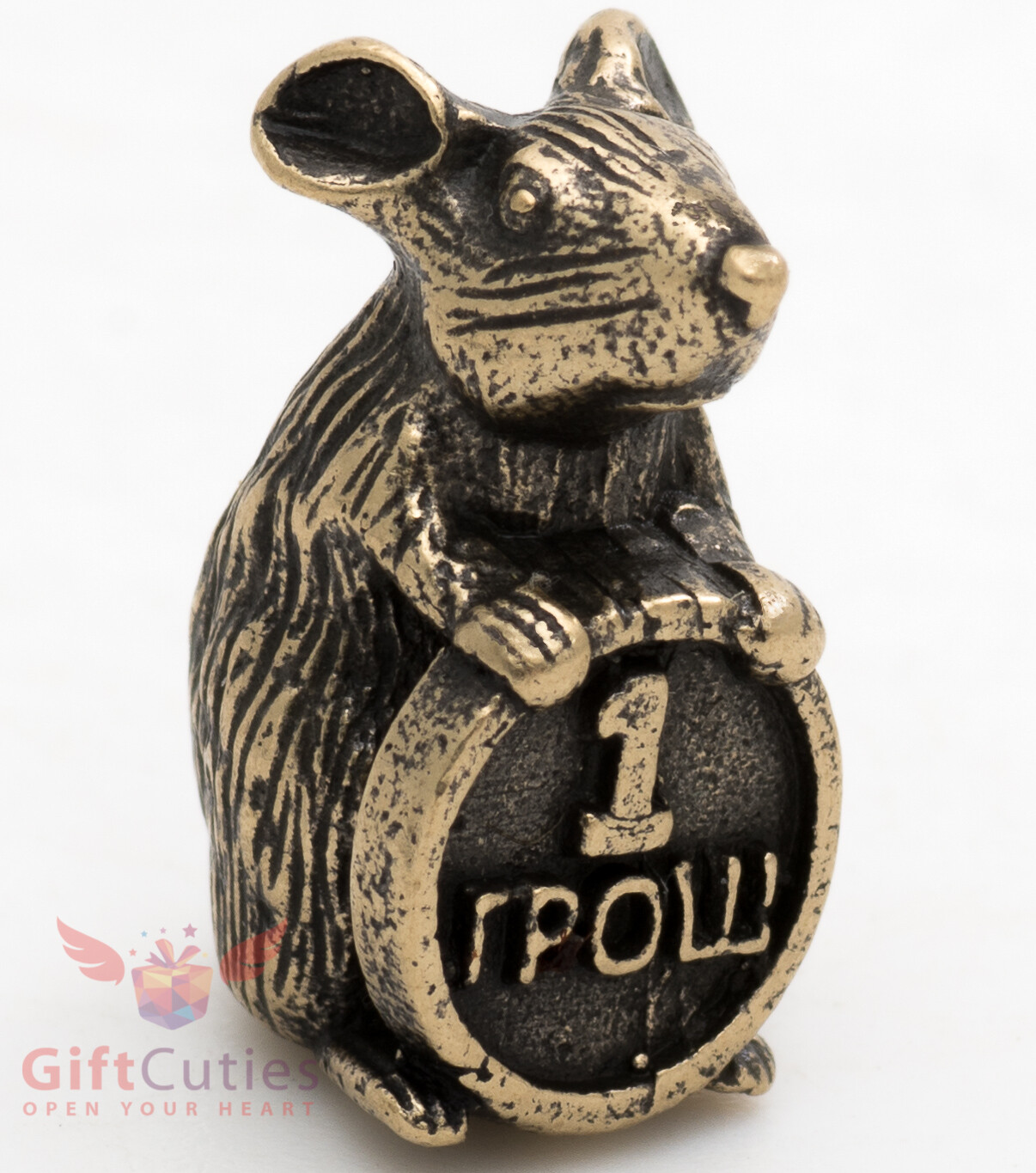 Mouse is a symbol of Year 2020Bronze mouse holding old Groschen coin. Pocket talisman Mouse is a symbol of Year 2020Length: 0.63" Width: 0.37"