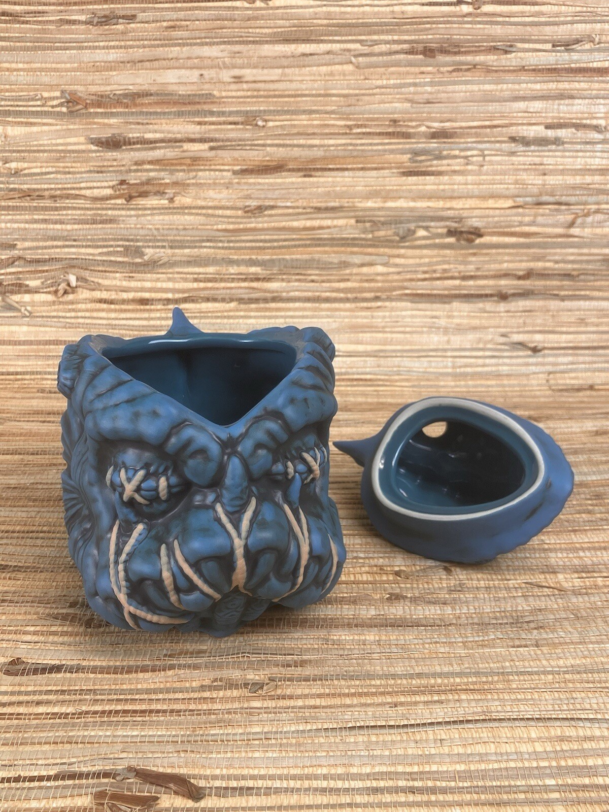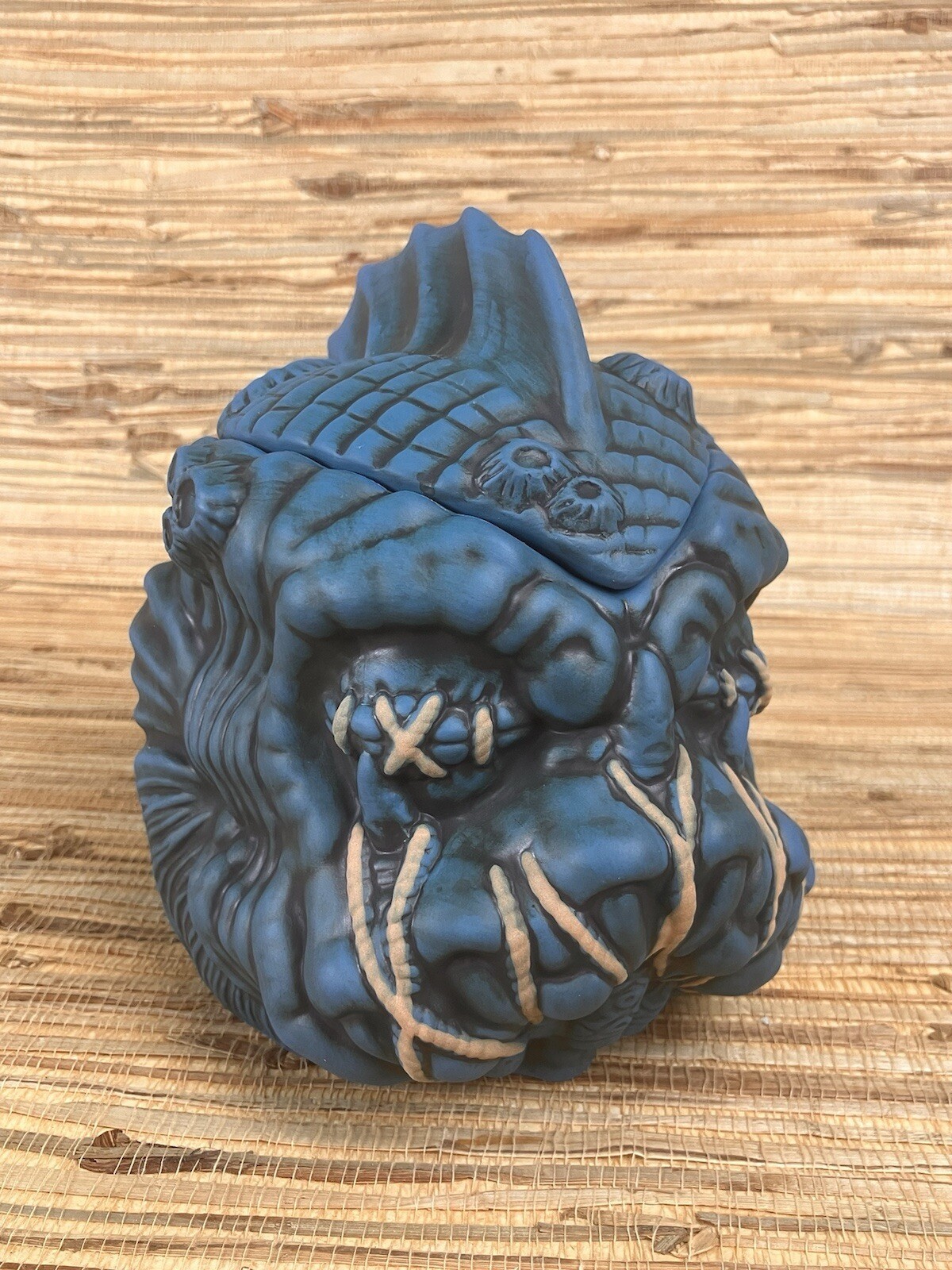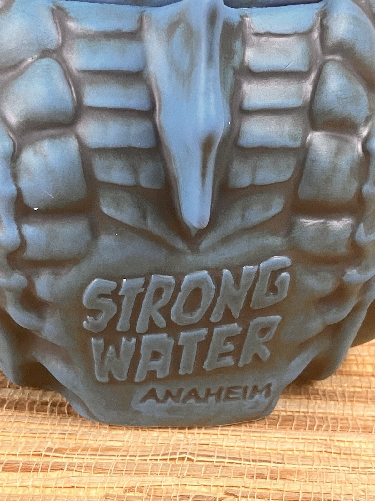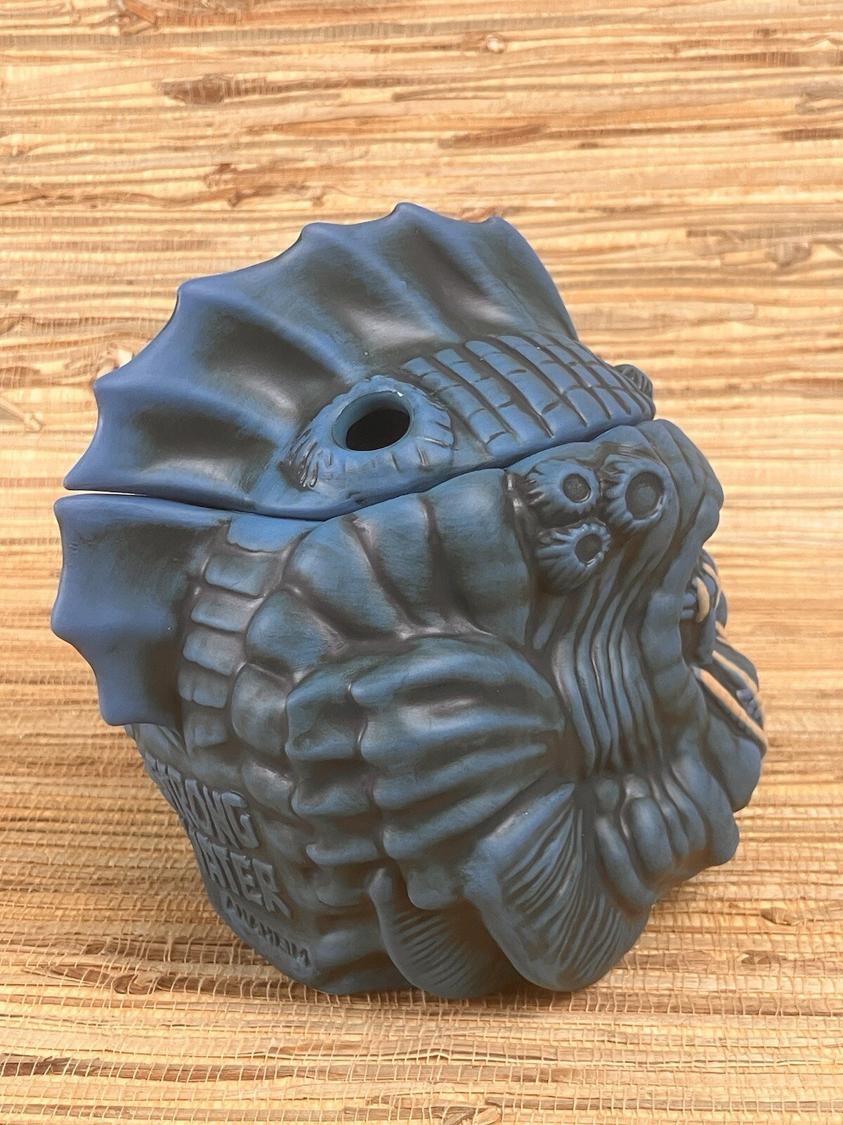 Tales from the Black Lagoon Tiki MugStrong Water Anaheim California2nd Edition Blue GlazeDesign by Alex WoodyMade by Tiki FarmMeasures Approx.6" TallIncludes Coaster and Umbrella