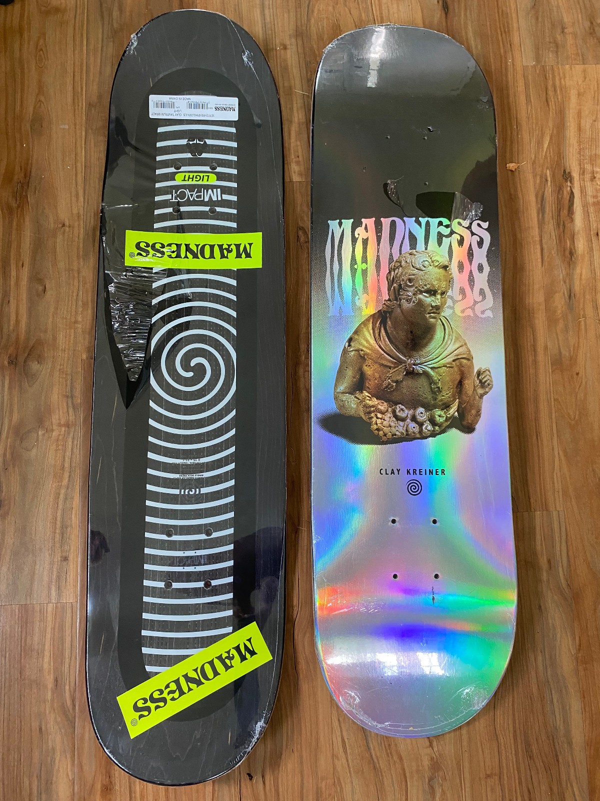 This Madness Clay Kreiner Tantrum Impact Light Holographic skateboard deck is listed as new. It’s suitable for replacing a worn deck or building a complete setup, whether you ride street, park, or just want a fresh board for your collection. Free shipping is included with the purchase. Details such as exact size, shape, and included hardware are not provided here—check the listing for details. Review the product listing and photos to confirm it matches your preferred specs and setup needs before ordering.