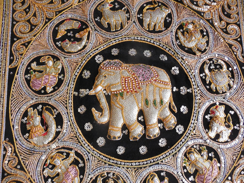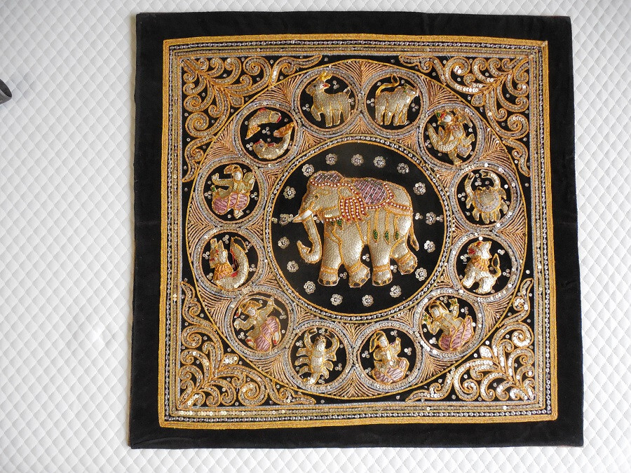 Vintage KALAGA TAPESTRY: Astrological Zodiac Horoscope Hand Embroidered 22"+ x22"+