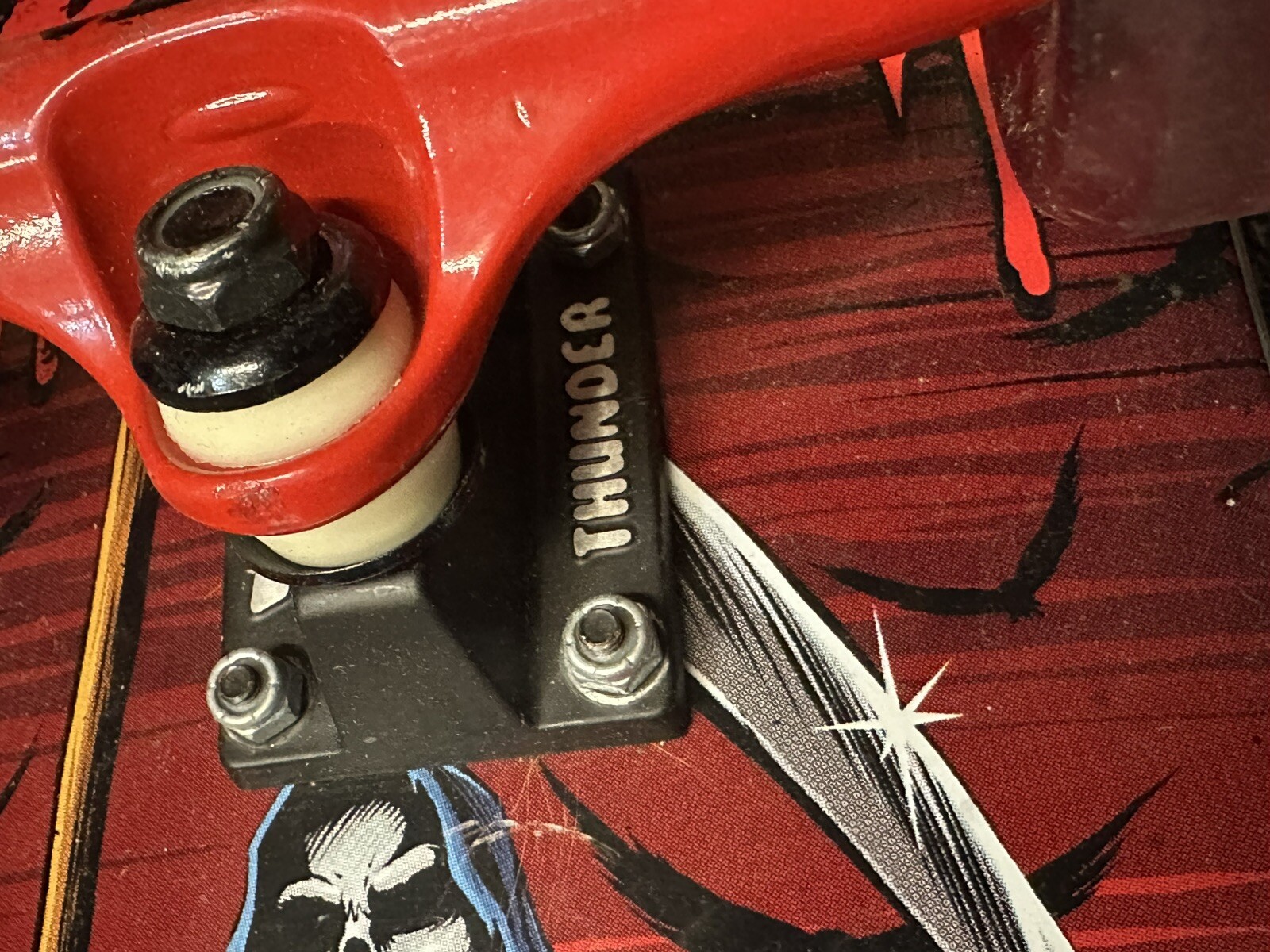 BLIND Dark Horse Complete Skateboard Thunder Team Trucks Bones Clear Red WheelsSome wear on nose and tailCould use new grip tapeOver all is good condition