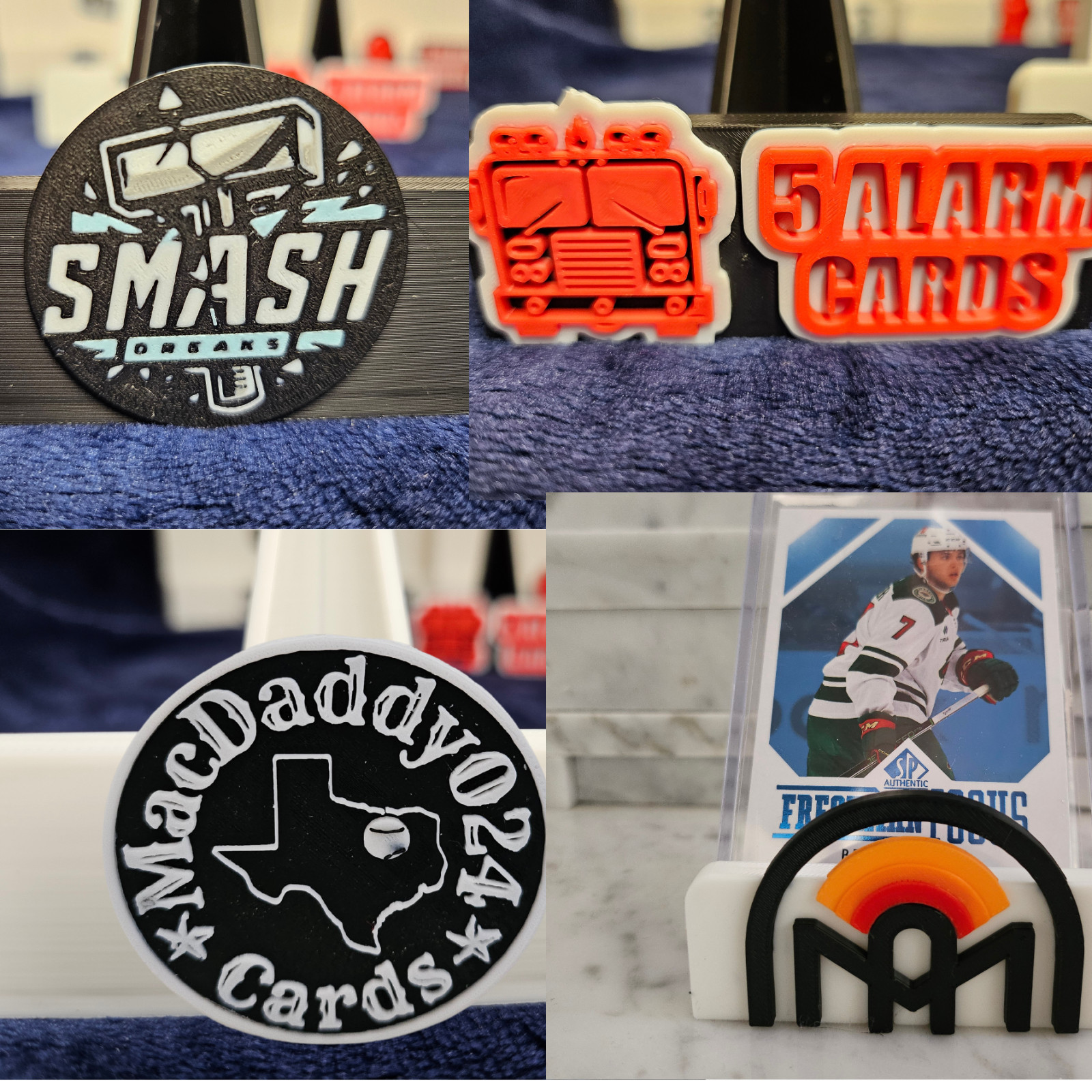 Custom Card Stand (add your logo), For Sports Cards, Pokemon, MTG, Breakers a,a:hover,a:active,a:visited Custom Card Stand (add your logo), For Sports Cards, Pokemon, MTG, Breakers Send us your logo or business name and we will create custom card stands for your live streams, product photos, rips or card breaks. Our standard card display stand is perfect for sports cards or trading cards like Pokemon, Magic.. etc.... See other listings for the shorter round style card stands.For an existing logo we need clear images with up to 4 solid colors and bold lines. png or jpg format works. We will take it from there! You can send us your logo before purchase and we will let you know if it work or will need adjusting. Regardless, we can figure out a way. If you don't have an existing logo design we can develop a design for your name. You can message us through Ebay.The stands can hold almost any card (Standard