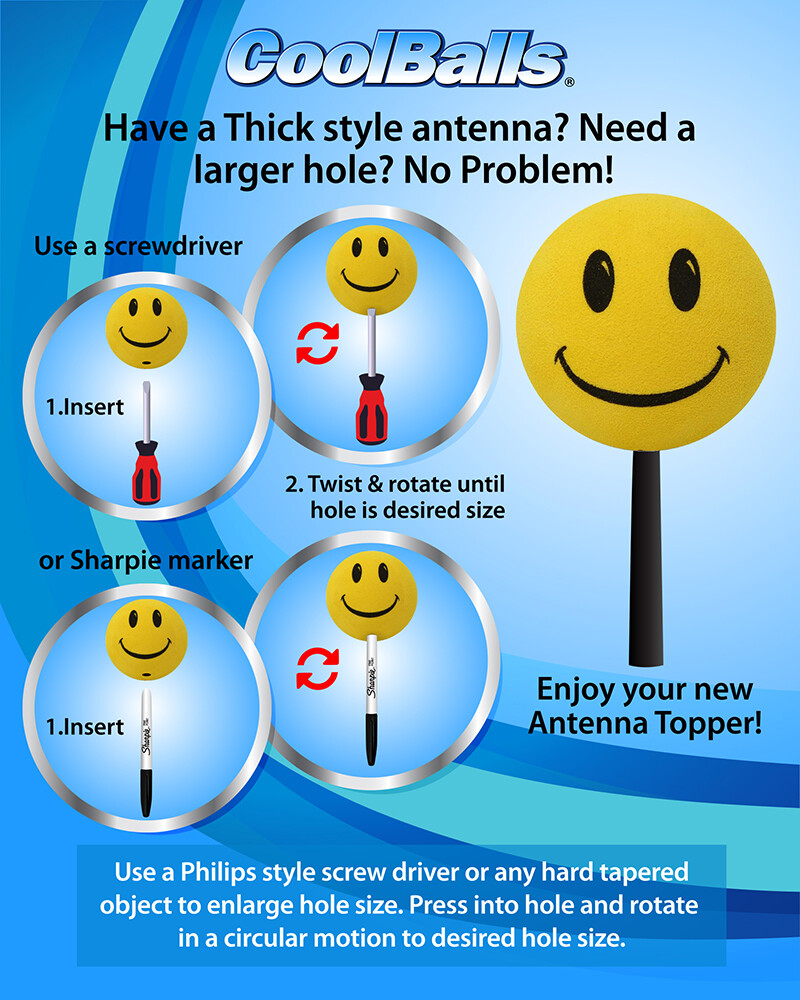 Brand | Have a Ball... a Coolball of course!Happy Amigo Birthplace: Houston, TXFind Your Car, Truck or SUV in a Crowded Parking Lot Really Fast. Made of Soft, Durable, Waterproof EVA Foam ** FITS THICK FAT STYLE ANTENNA ** Hole Size is 9.5mm Diameter for Antenna