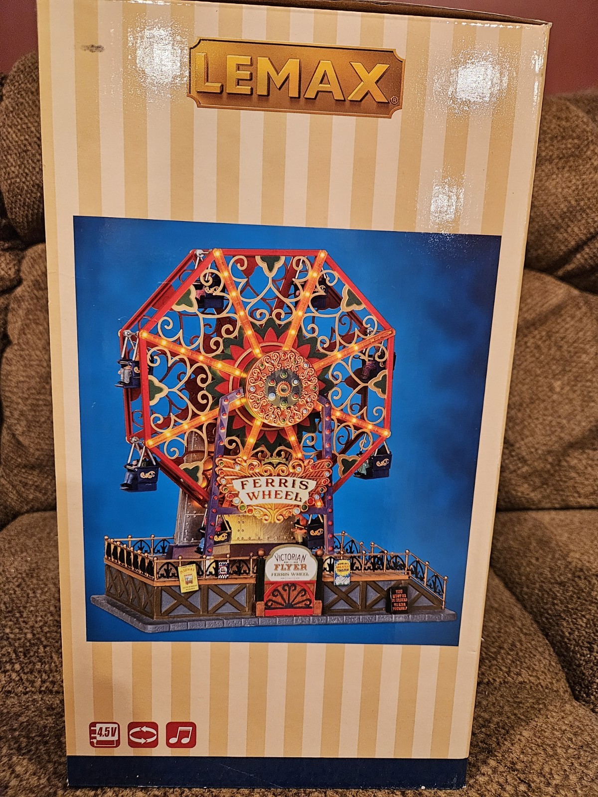 This Lemax 2013 Christmas Village piece is the Victorian Flyer Ferris Wheel, a collectible accessory for seasonal village displays. Condition is New. It is listed in the Collectibles category and ships with Free Shipping. If you need specifics such as exact dimensions, materials, included parts, or whether lights/sound features are included, check the listing for details. Review the product photos and seller notes for packaging condition and any additional information before purchase.