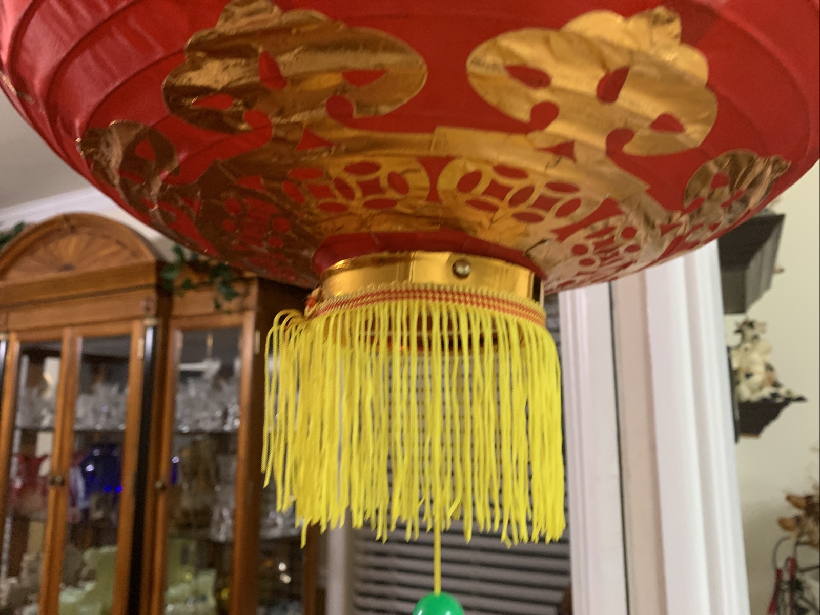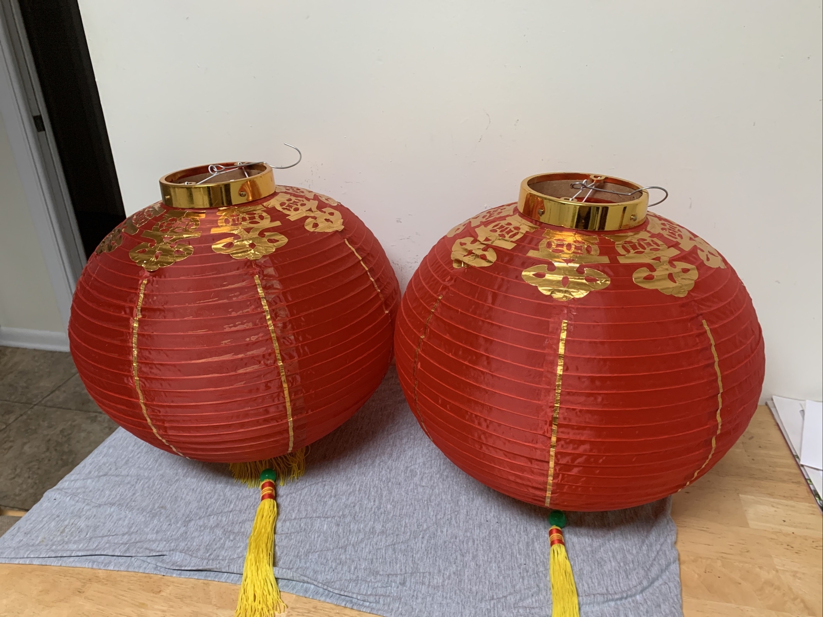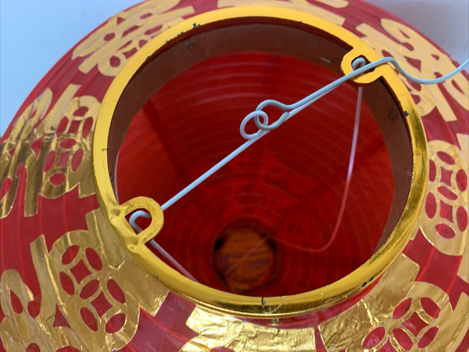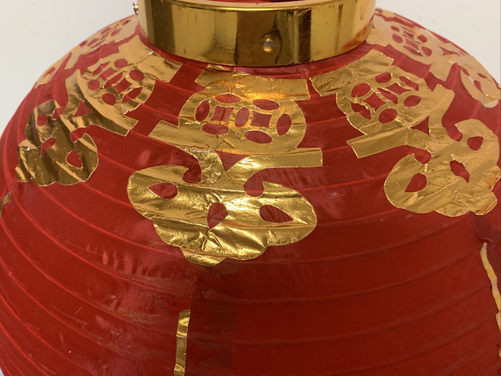 This lot of vintage Chinese red and gold fabric collapsible lantern decorations is offered in used condition. These lanterns are suitable for collectors or for traditional decor and event display, and they fold down for easier storage when not in use. Exact quantities, sizes, included hardware, and any wear or defects are not specified—check the listing for details. Price is $199.99 USD and shipping is free. Review the photos and listing notes to confirm what is included and the overall condition before purchase.