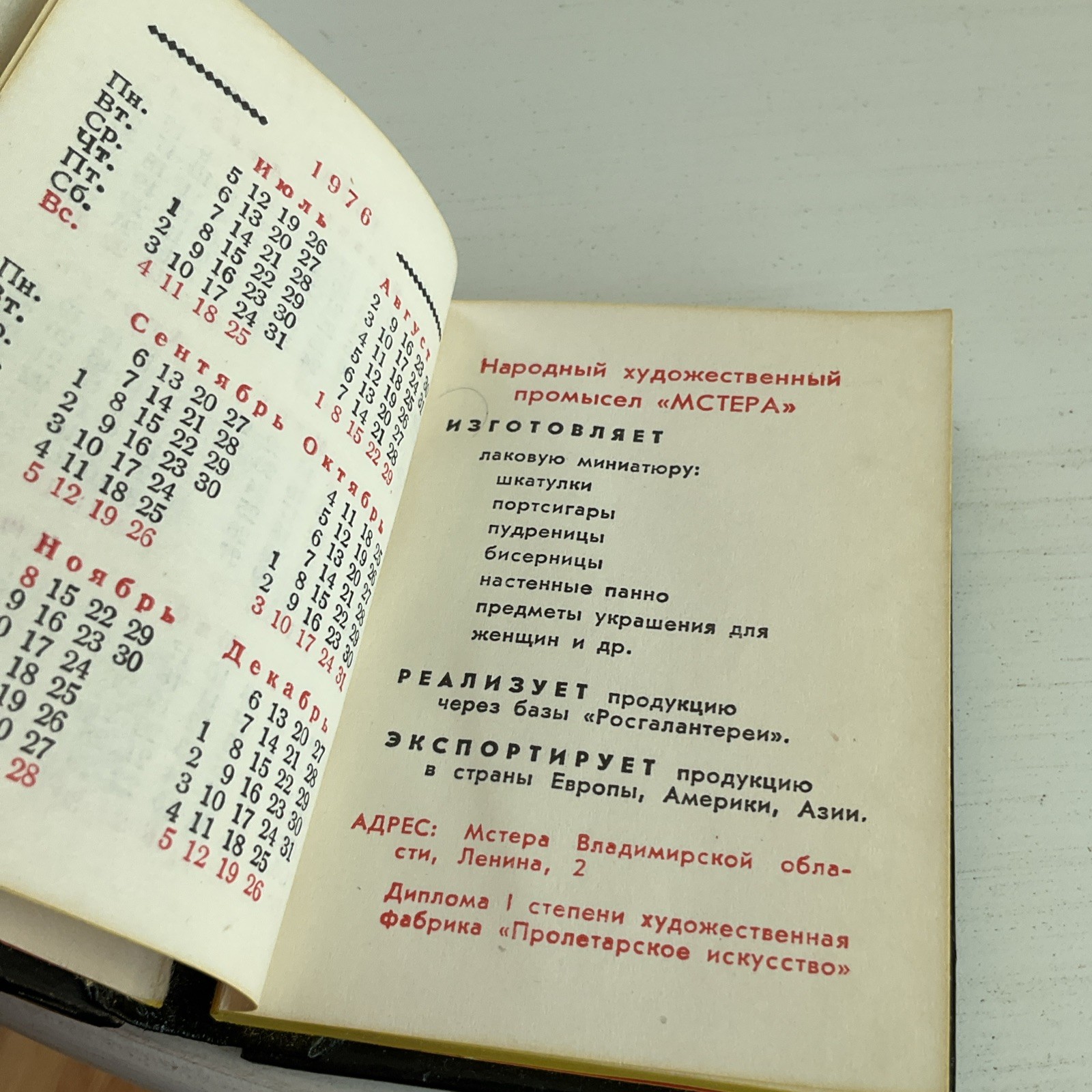 This vintage 1975 Russian lacquer address book is offered new and fits well in a pocket for easy carrying. It features blank pages intended for notes and contacts; check the listing for details on any calendar content or included inserts. Ideal for collectors of Russian lacquer items and vintage stationery, it can also be used as a compact everyday notebook. The item ships with free shipping, and the condition is listed as new. Check the listing for details on measurements, materials, and any original packaging.