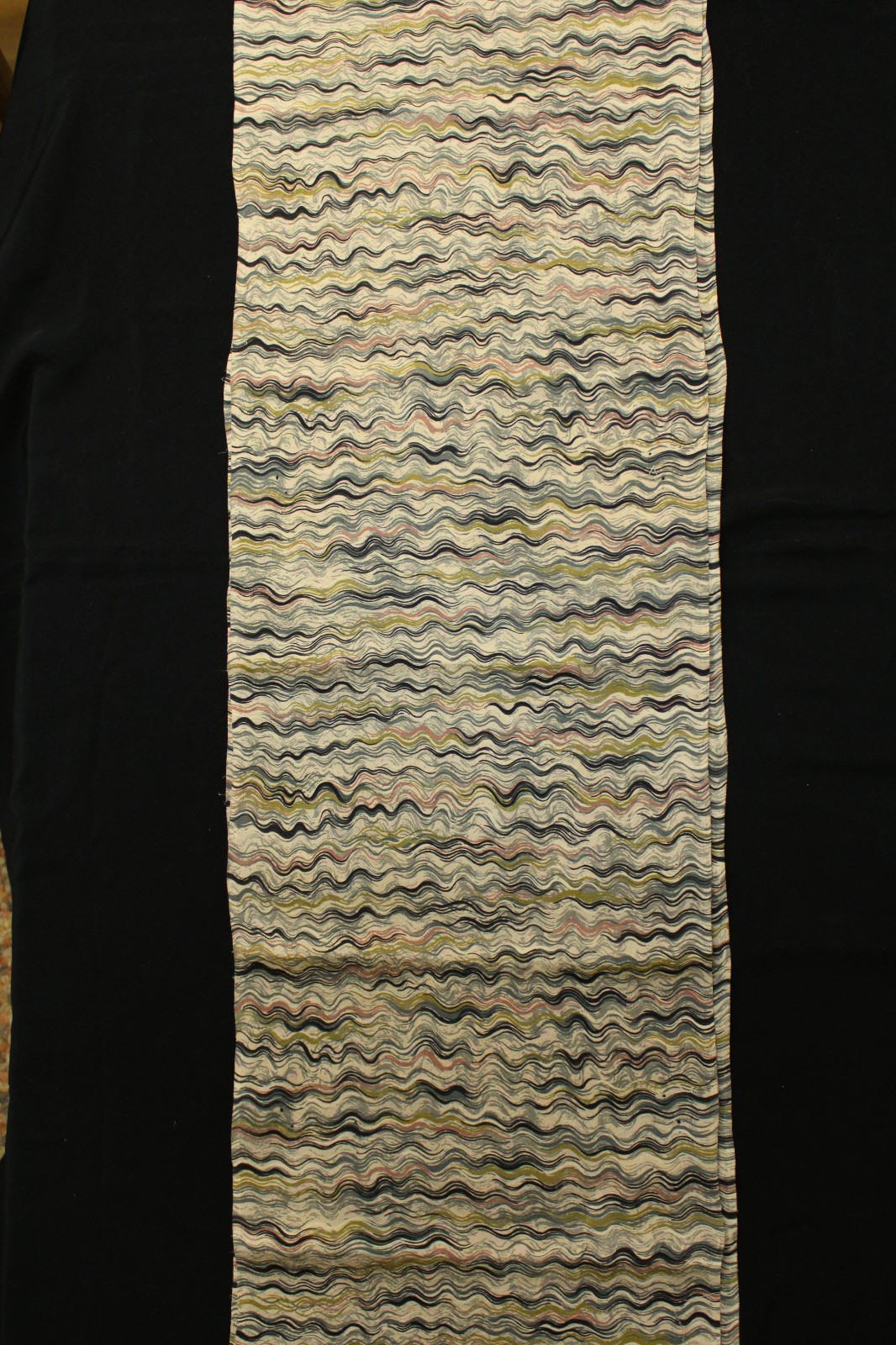 Excellent condition light weight kinsha (fine, light crepe) silk. Toothy, soft, semi-matte. Measures 13" x 64". Hand washed, line dried, steam pressed. Base
